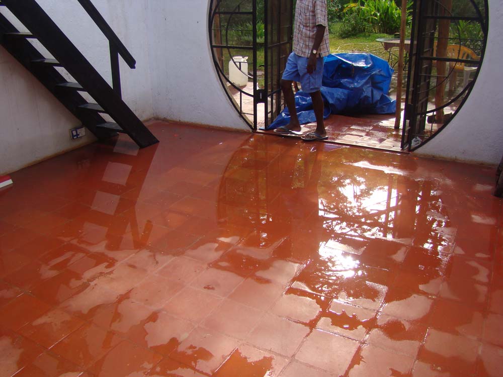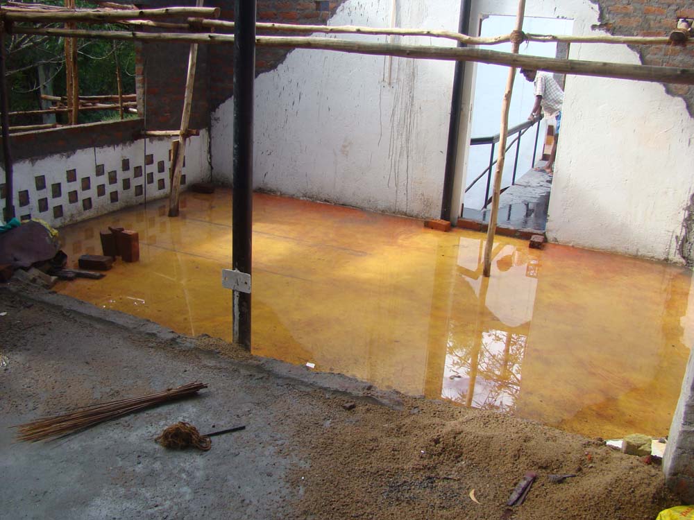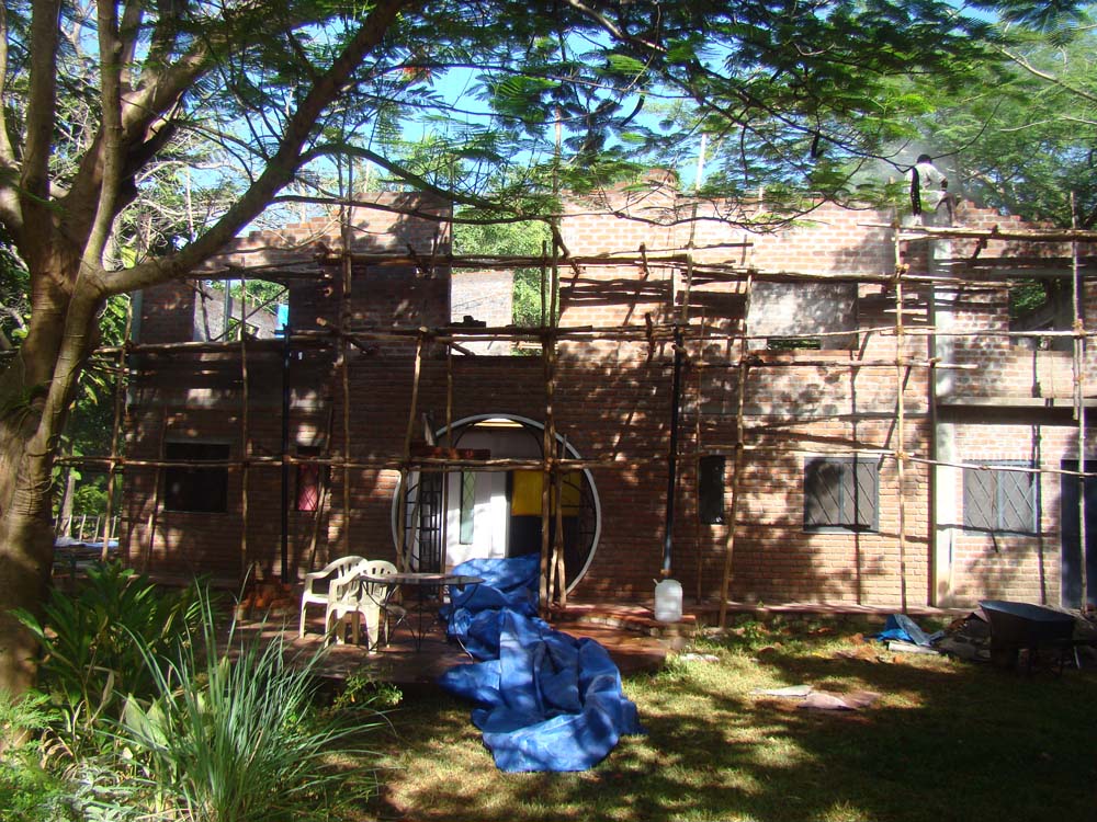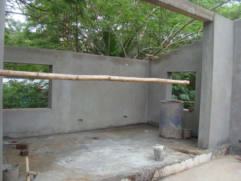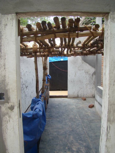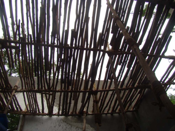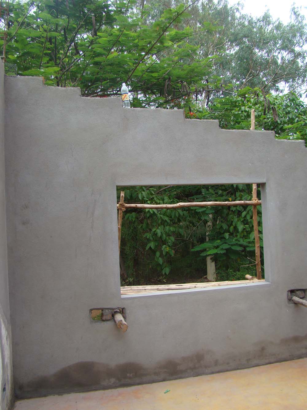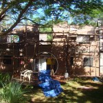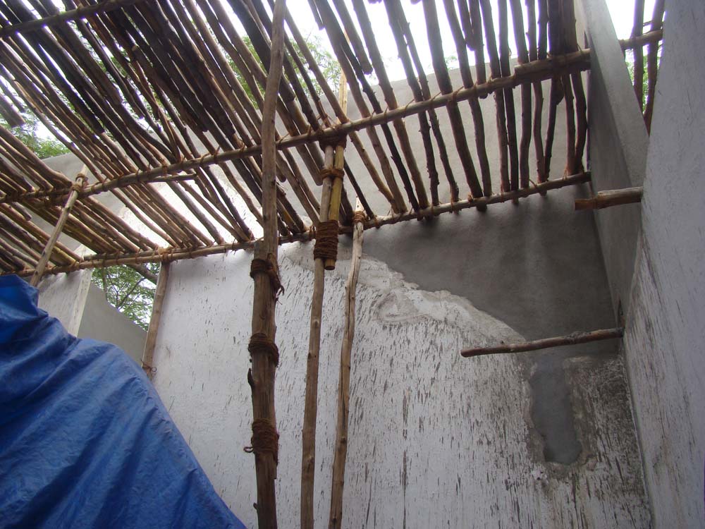 Ils ont finit l’enduit sur les murs et ont aussi fait tout l’échafaudage pour poser la structure en métal.