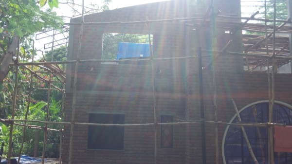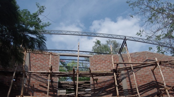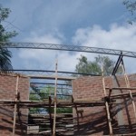 Posted on August 19, 2011 7:05 pmEt non toujours pas de toit On a presque la structure en métal, mais presque. Après ça ils pourront commencer à poser le toit mais ça doit être finit pour la fin de la semaine (d’après le maître de chantier), vous y croyez???