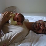 Puis on a aussi essayé le grand lit avec Papa, ça il a beaucoup aimé!