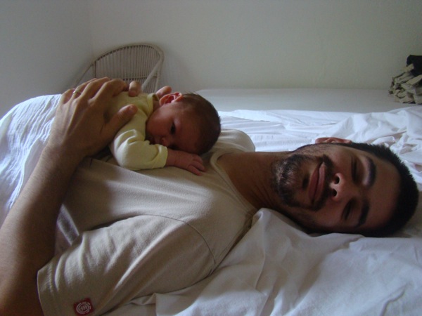 Ensuite, une petite sieste, avec une jambe dehors bien sûr, comme son Papa :)!