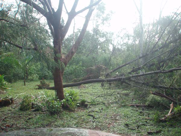 Résultat des courses, on a eu plus de peur que de mal. Le nouveau toit a bien tenu le coup malgré quelques fuites ici et la. Par contre le jardin est tout a refaire.