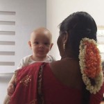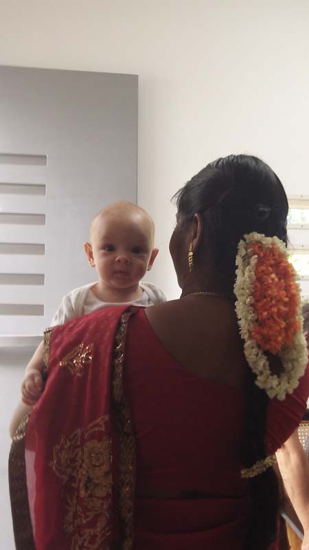 Lorsque Milo et moi allons à Auroville Papers et qu’il est réveillé (parfois il dort tout le temps), je ne le vois pas beaucoup: c’est le chouchou, donc tout le monde se bat pour l’avoir!!