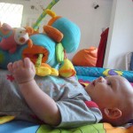 Maintenant, Milo s’endort TOUT SEUL, en haut! Mais (parce qu’il y a toujours un mais), sur le lit de ses parents, et allongé à coté de sa maman…