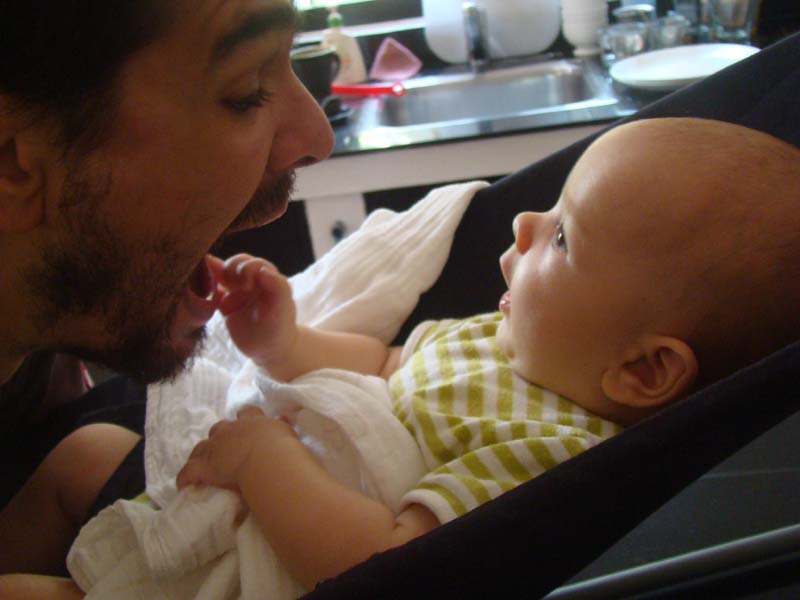 Il y a pas mal de personnes qui font rire Milo: Anna, Zoé, Auma, et même notre voisin lorsqu’il lui parle en tamil!