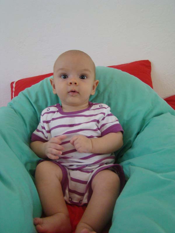 Milo reste maintenant un peu assis s’il est calé dans des coussins.