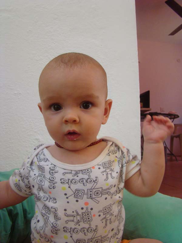 Toute la journée, il n’a pas été bien, et le soir au moment du coucher, on a eu le droit a un gros vomis (le premier!)…