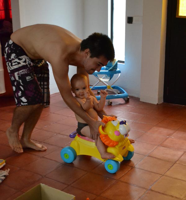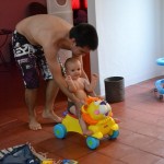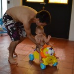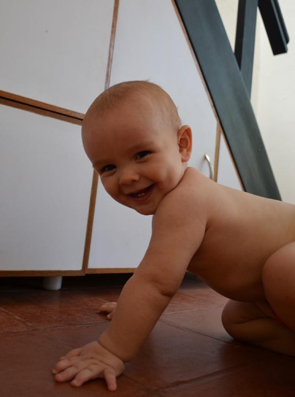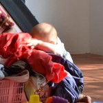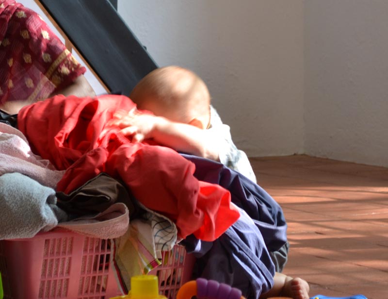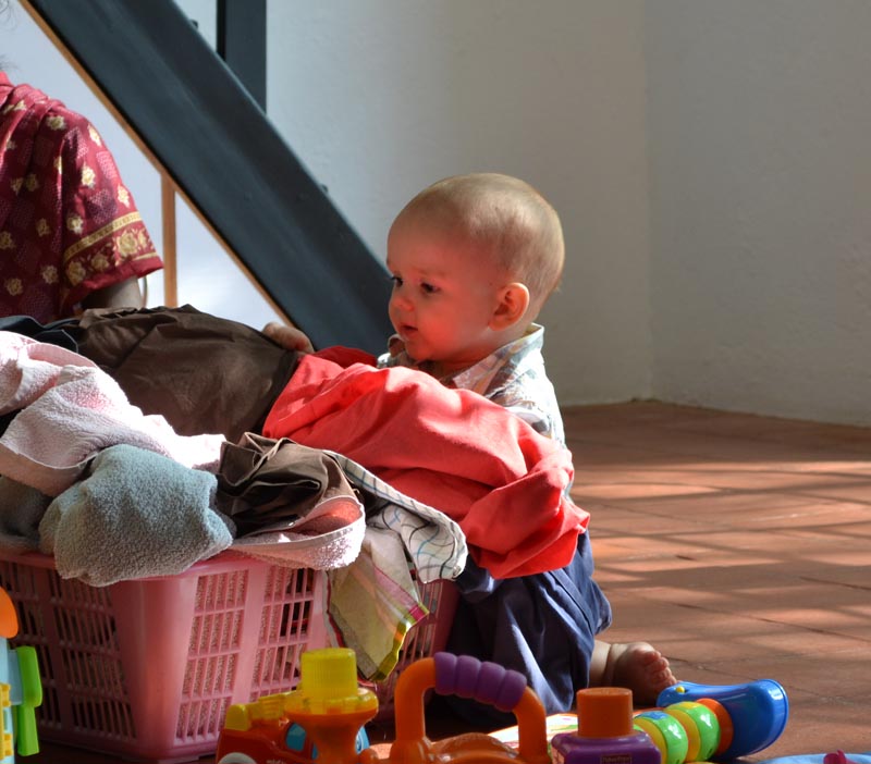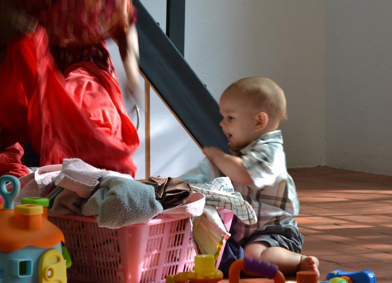 Et oui, Milo plie le linge… La semaine prochaine, on lui apprend à repasser!