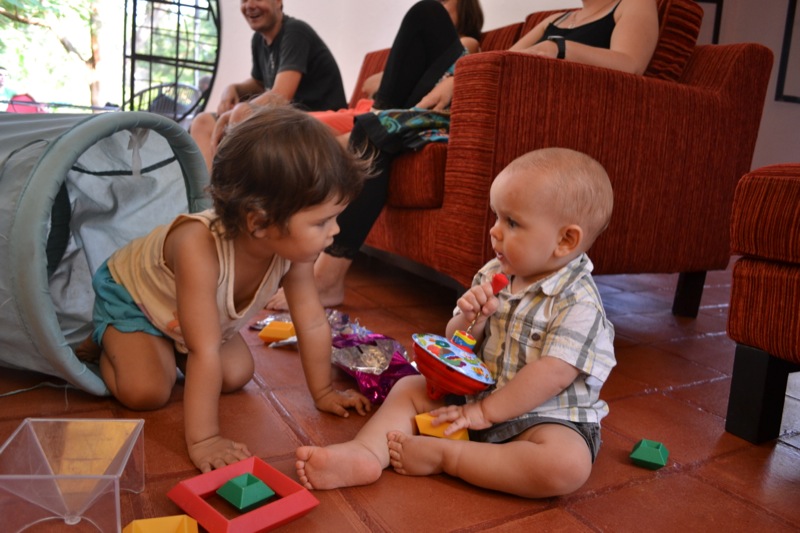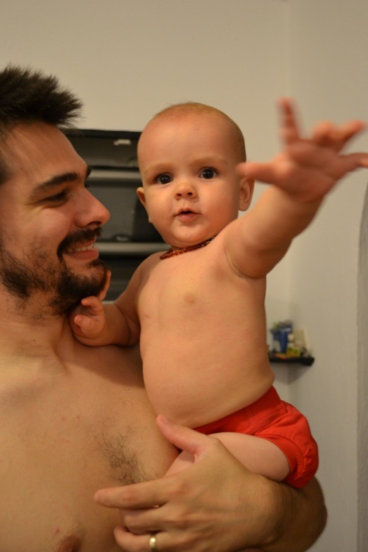 -Il applaudit, donne ses jouets et commence à comprendre les interdits: ne pas toucher aux fils électriques et aux prises. Il sait ce qu’il veut, et pointe du doit pour nous le faire comprendre.