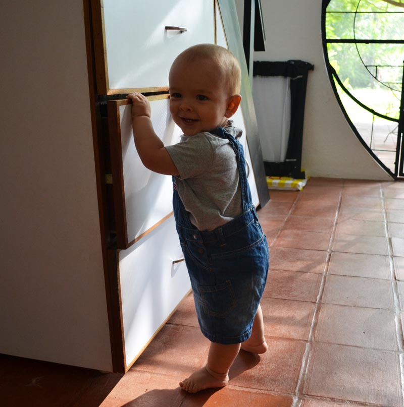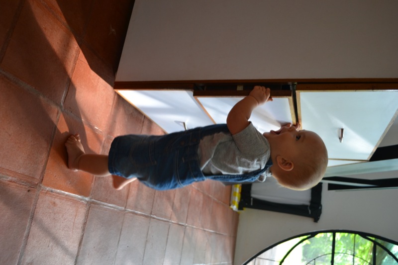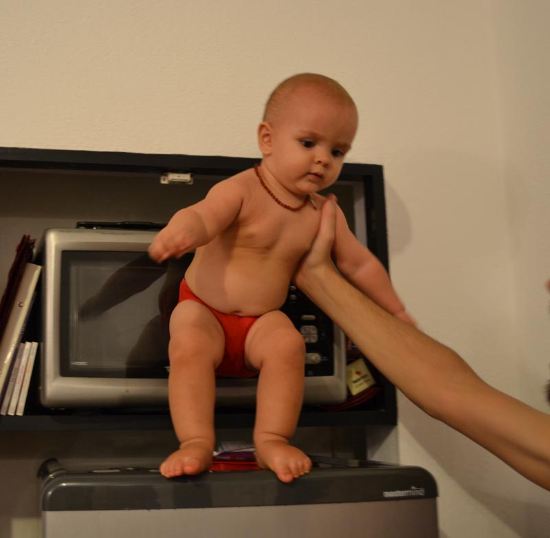 -Il commence à être de plus en plus stable pour marcher, avec une seule main, enfin lorsqu’il n’est pas sur la pointe des pieds bien sur!
