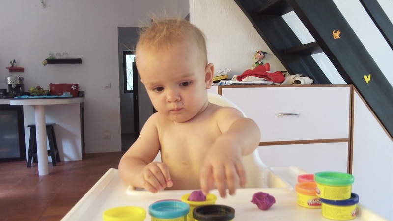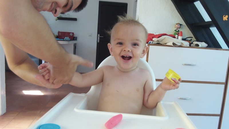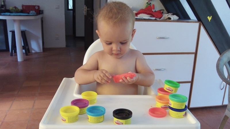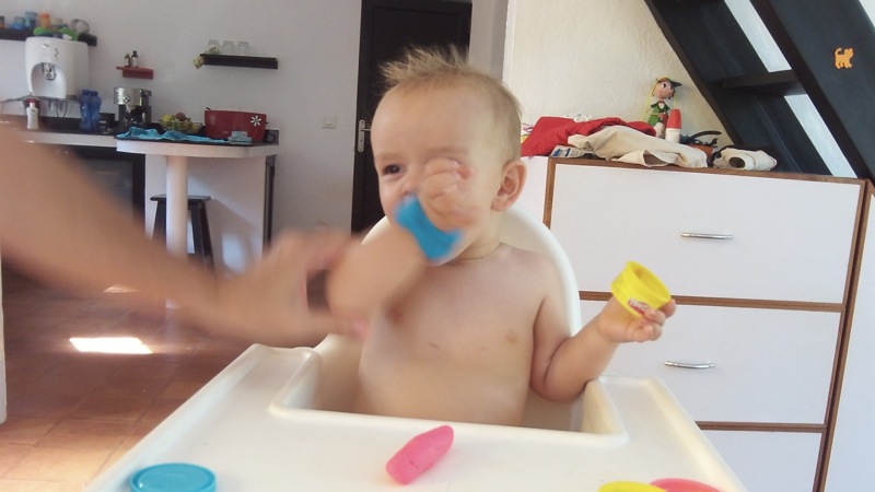 Posted on March 20, 2013 10:47 pmApril 15, 2013 10:58 pmPate à Modeler Pour son anniversaire, Milo a reçu de la pâte à modeler avec sa cousine. Jusqu’à la, on ne lui avait pas donné, car il met tout a la bouche, mais on a quand même essayer: Mais bien sûr, ça n’a pas raté!