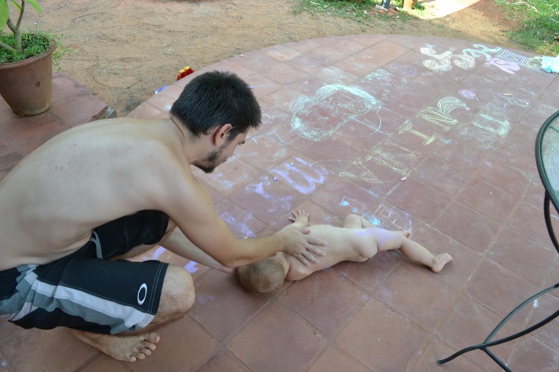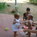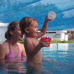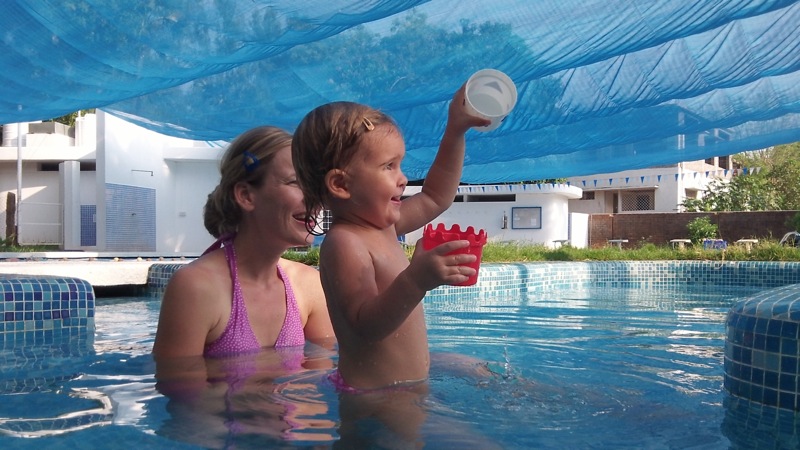 Il fait tellement chaud qu’on finit tous les jours à la piscine!