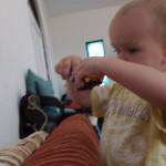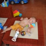 Lundi matin, Milo ne marchait toujours pas, et lorsque la pédiatre lui a demandé de mettre le pied par terre, on a eut le droit a un NON définitif.