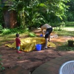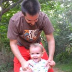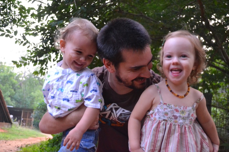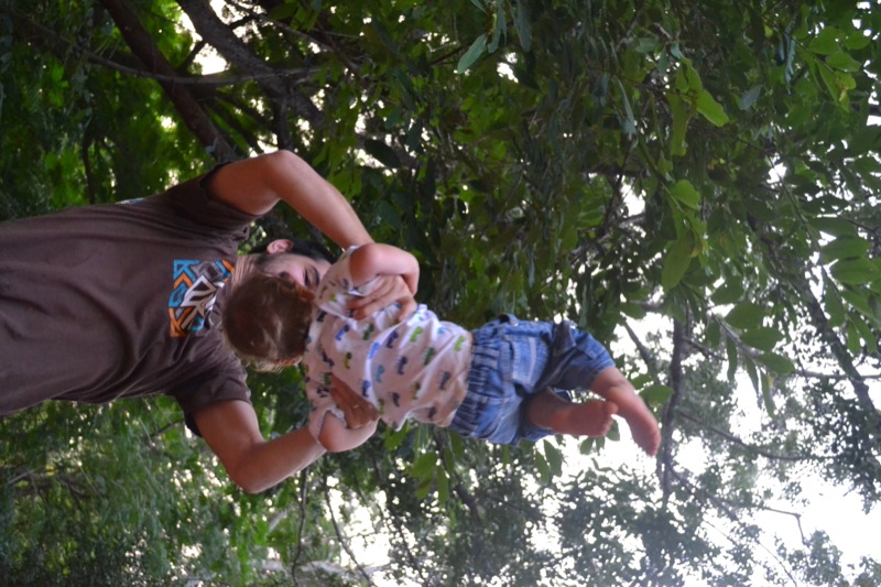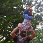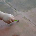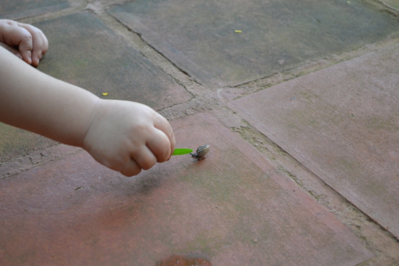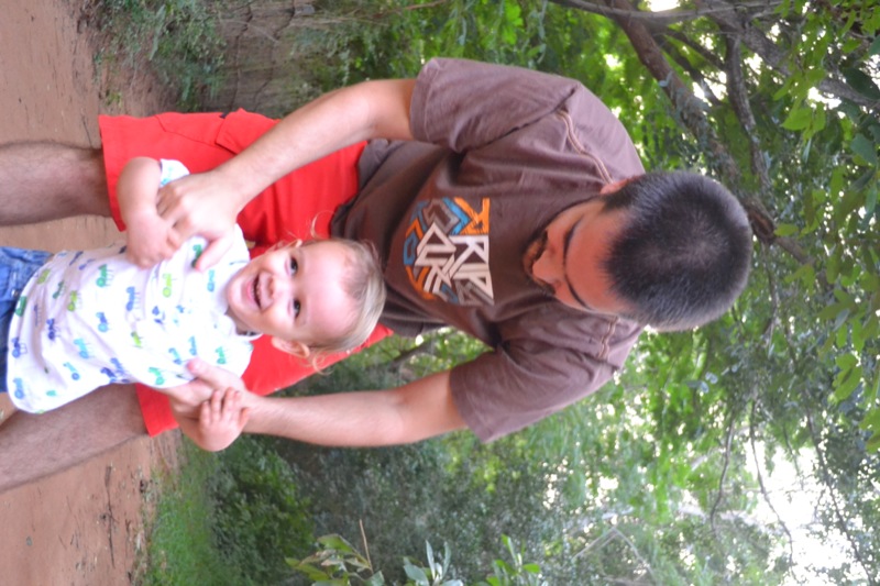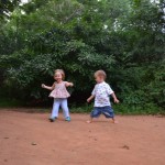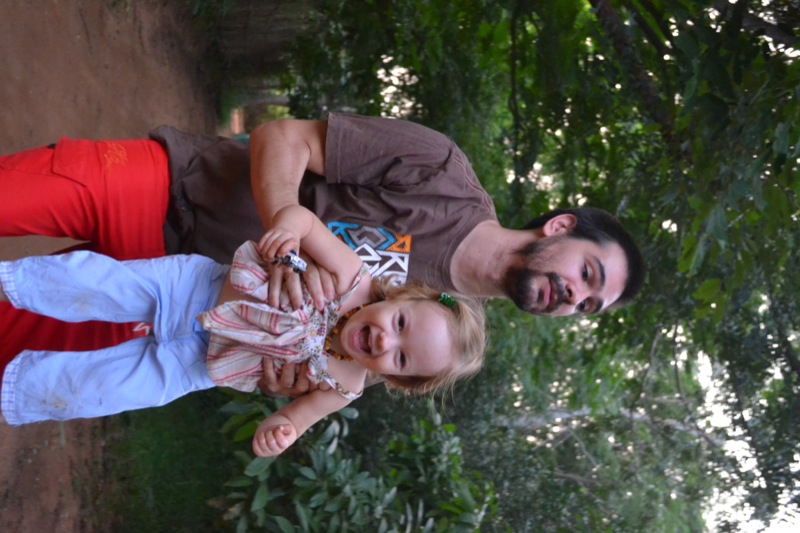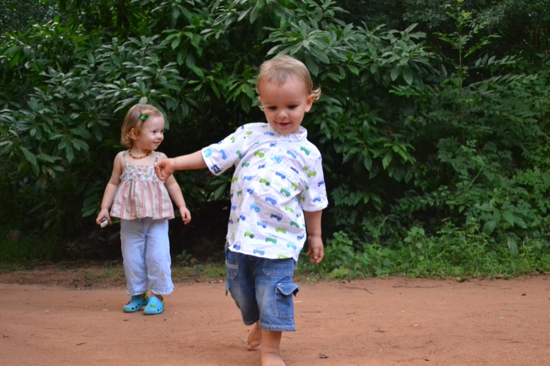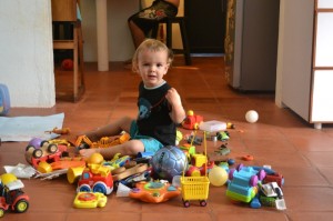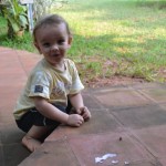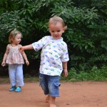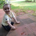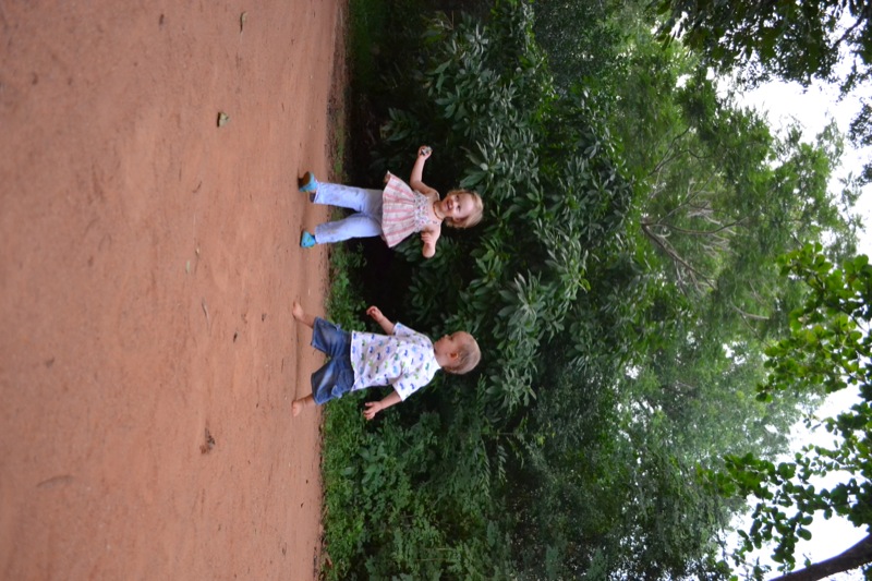 Un moment, il joue avec une grenouille dehors, puis tout d’un coup il rentre en courant: ‘A peur de la grenouille!’. Il a peur des serpents dans l’herbe, des singes dans les arbres…. Ça ne dure que 5 minutes, mais on l’entend de plus en plus. L’autre jour, le pain qu’il mangeait avait peur de la moto, il a dû aller se cacher dans le sac à Maman…!