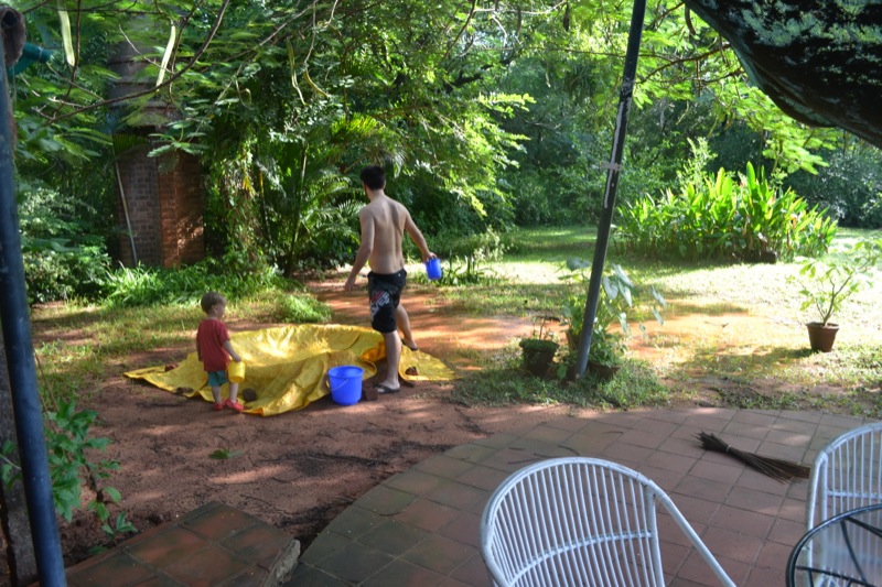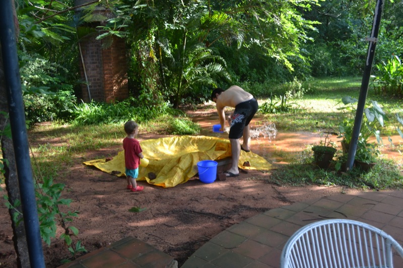 Lorsqu’il pleut, le bac à sable se transforme en piscine!