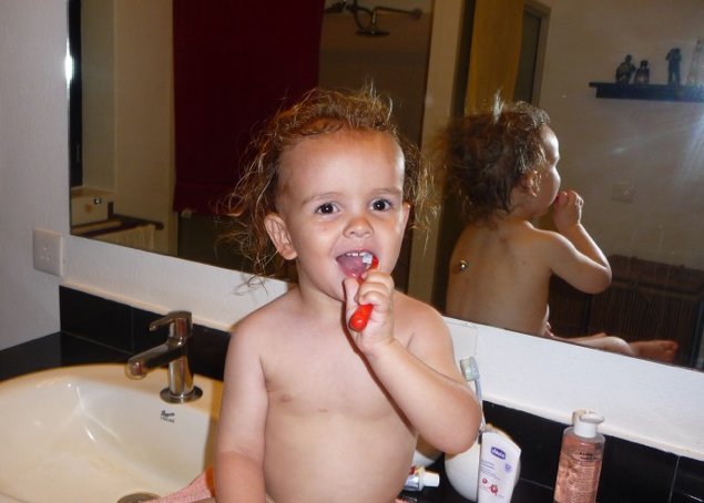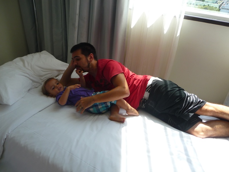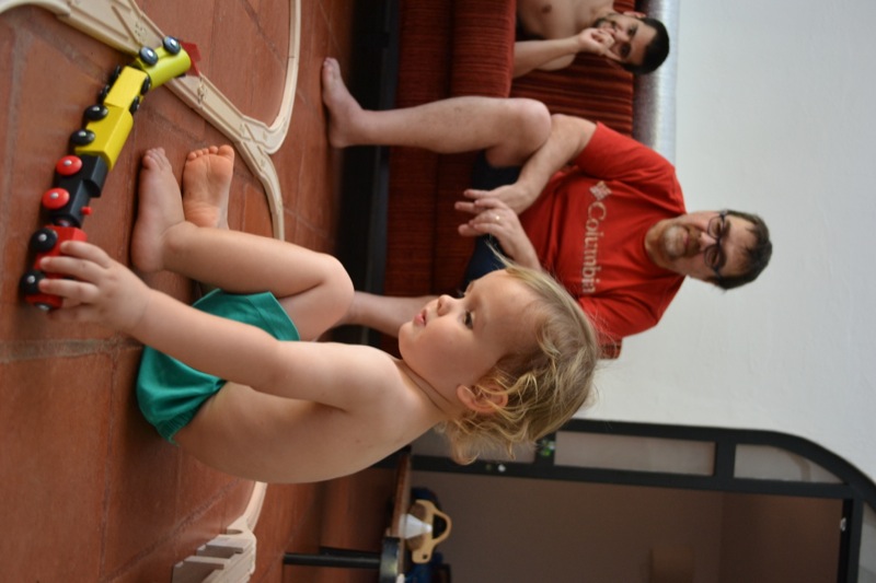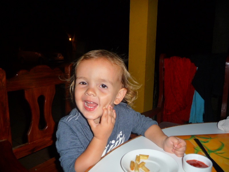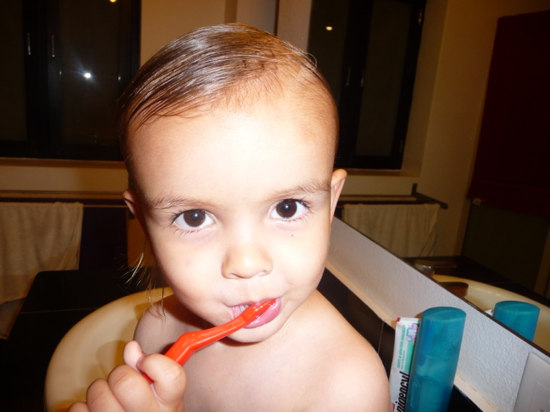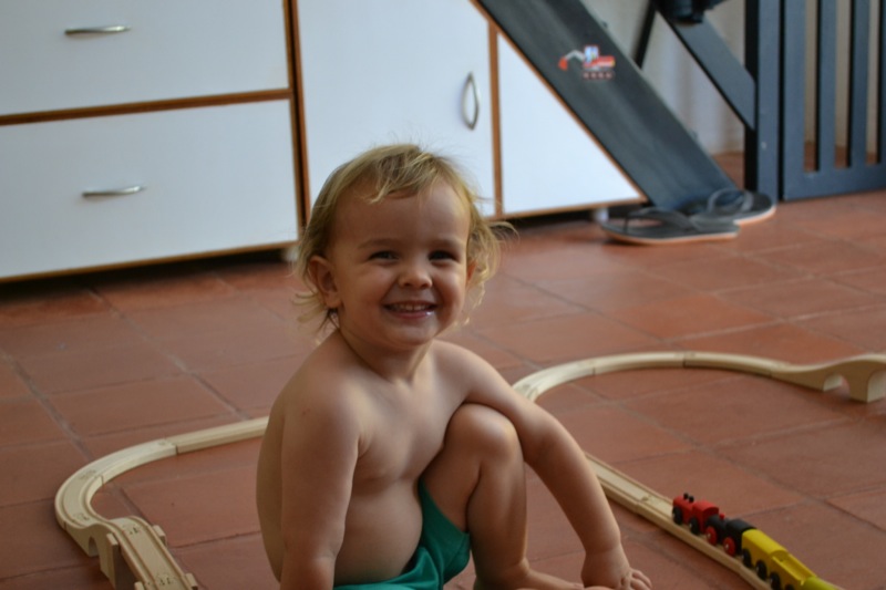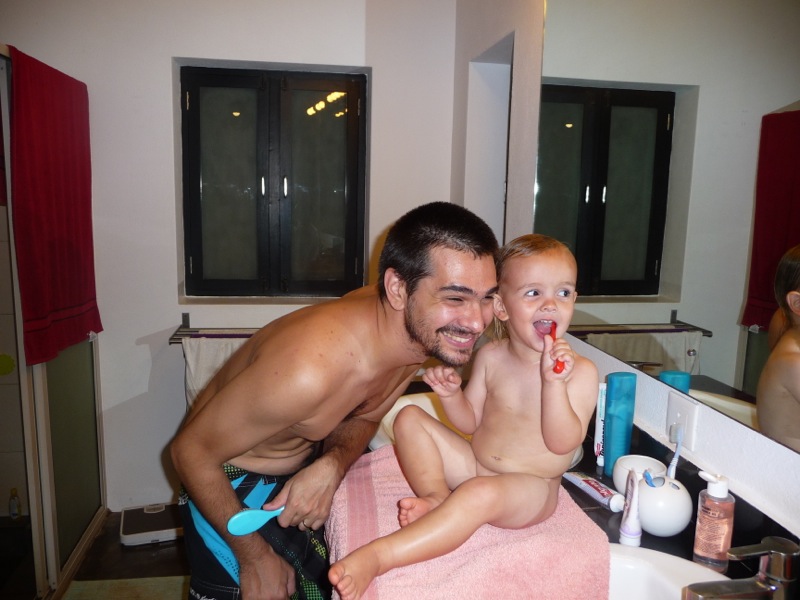 Mais parfois il lui arrive de ne pas être content avec elle: je lui ai dit qu’elle me donnait des coups de pied dans le ventre: Milo a donc regardé mon ventre d’un air sévère et lui a dit: “Pas taper le ventre a Maman, OK bébé?!”