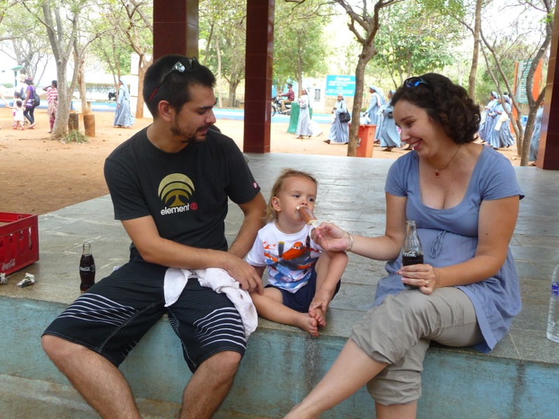 il lui fait des câlins et des bisous, lui donne à manger (par mon nombril ) et compte lui donner du gâteau au chocolat lorsqu’elle va arriver!