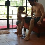 Et oui, le monsieur avait une longue barbe blanche de longs cheveux blancs… Et Milo confond ‘bonhomme de neige’ avec ‘Père Noël’ 🙂 !!