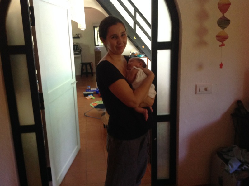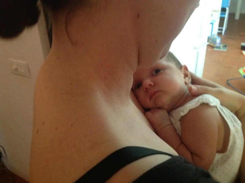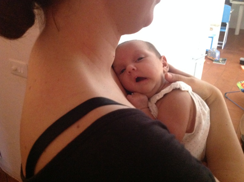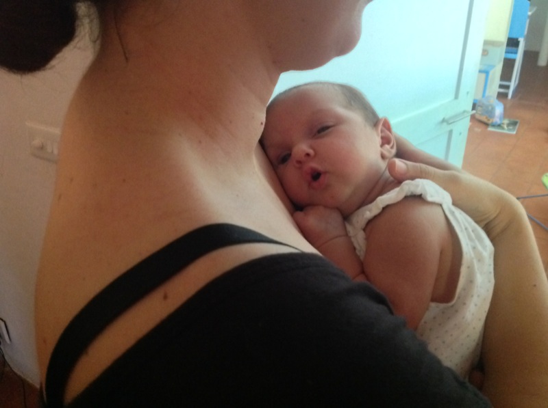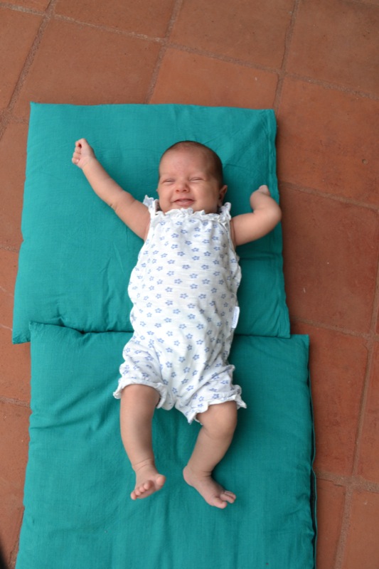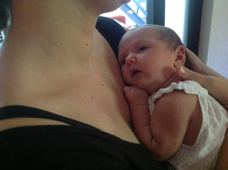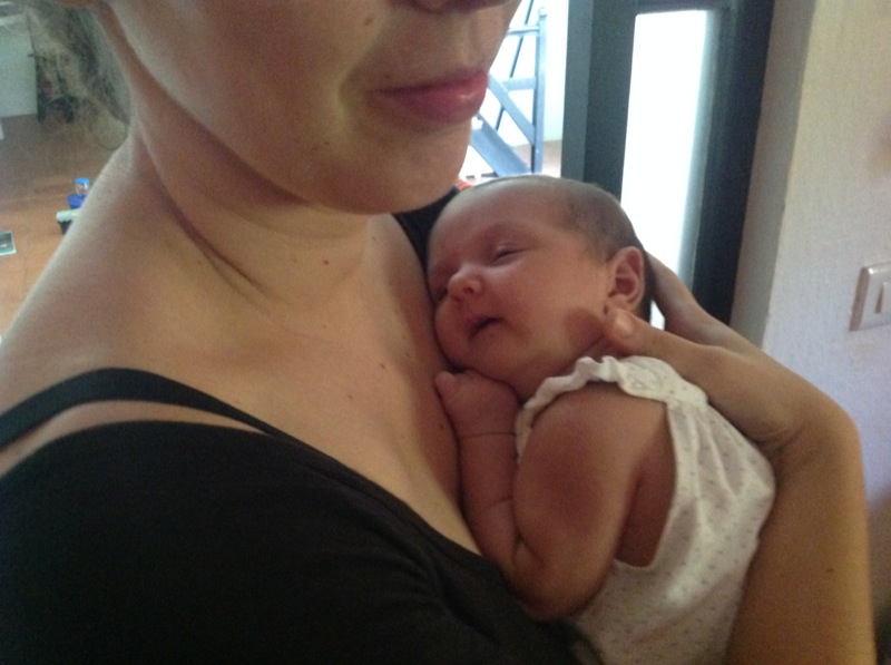 -Elle se reveille entre 6h et 7h, mange et repart faire une sieste de 3 heures, après ca elle reste généralement avec Milo et moi, dans le porte bébé en somnolant.