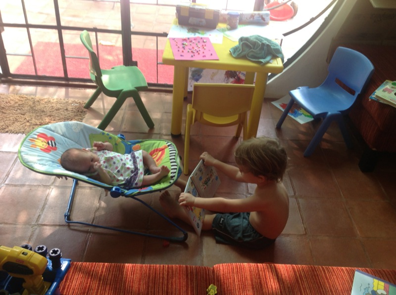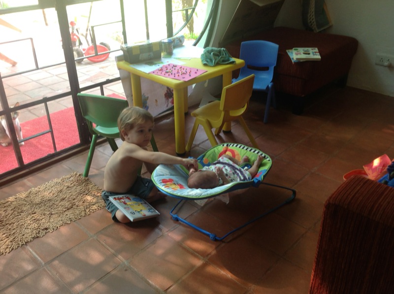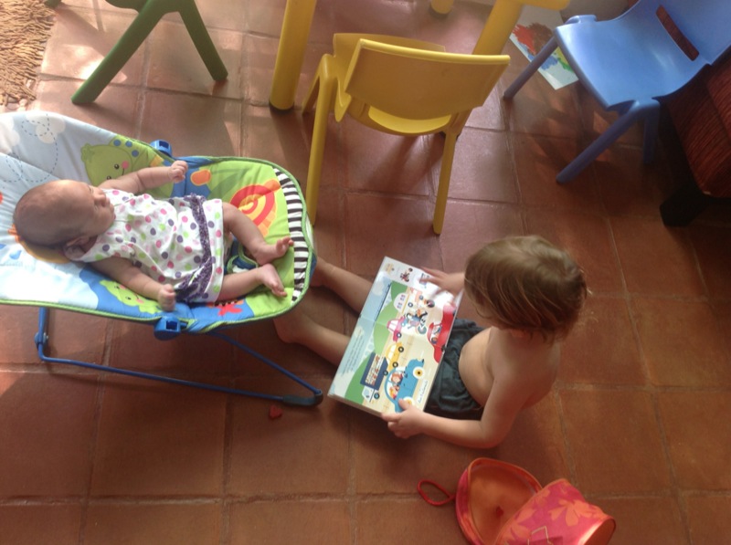 Si elle n’est pas avec nous, il demande où elle est; lorsqu’elle est dans son transat, il va s’installer a côté d’elle!