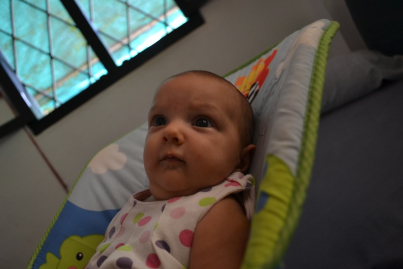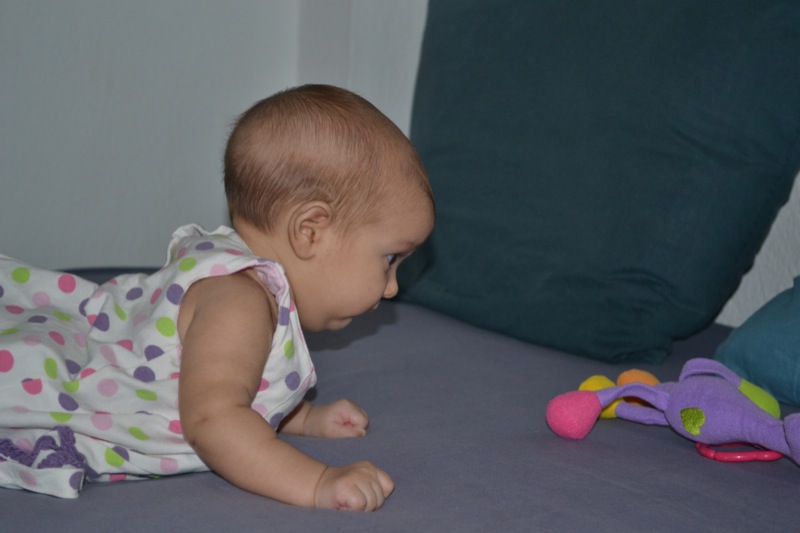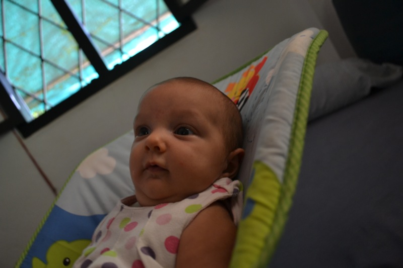 A part ça, elle commence a nous faire de vrais sourires, tient bien sa tête et se retourne.