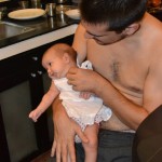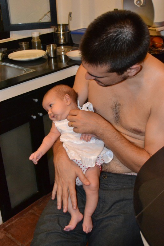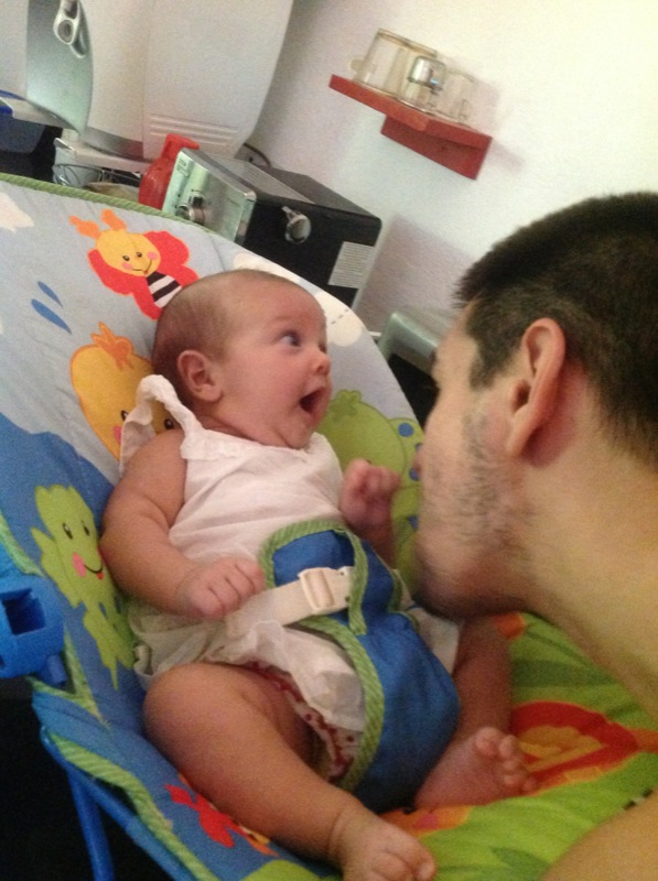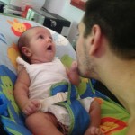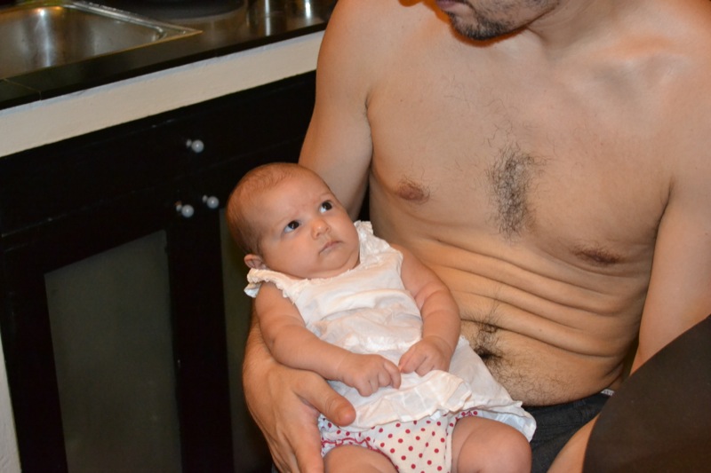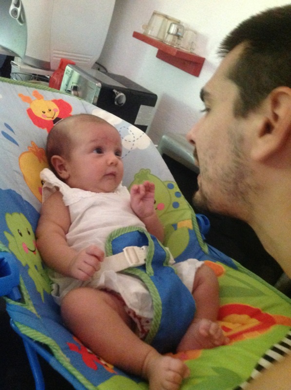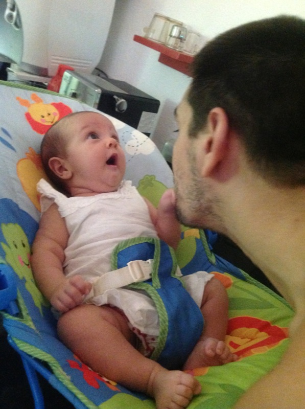 Et elle qui est si petite le cherche des yeux dès qu’elle l’entend, et lui pardonne des câlins un peu brusques!