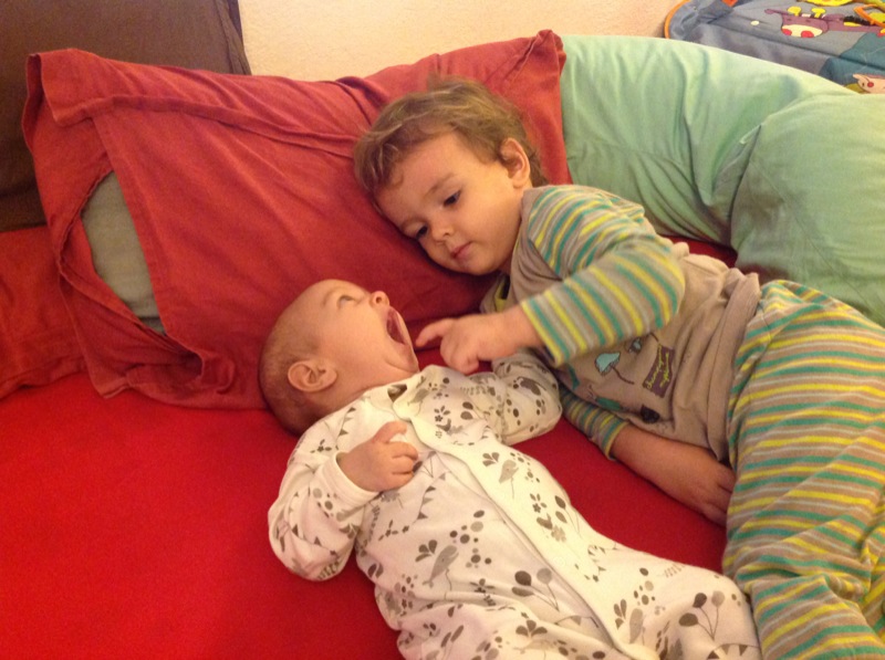 Milo est trop mignon: le soir lorsqu’il va se coucher, elle dort déjà, donc il parle tout doucement pour ne pas la réveiller, et pareil le matin: il se lève avant elle et sort sans faire de bruit! C’est le plus gentil des grands frères…