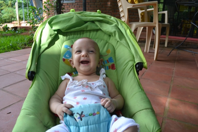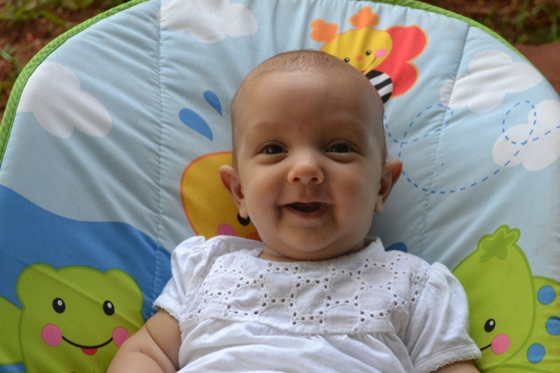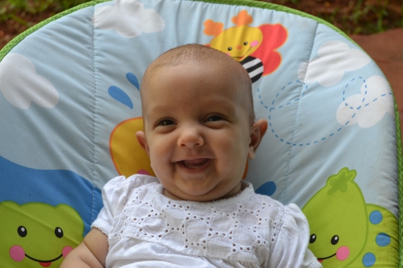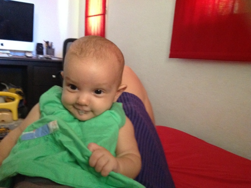 Elle parle, rie et gazouille, surtout si Milo, Quentin ou moi sommes à côté d’elle!