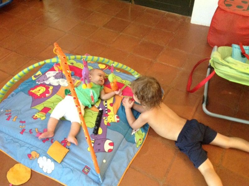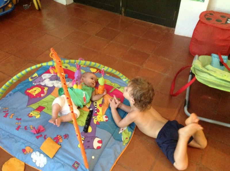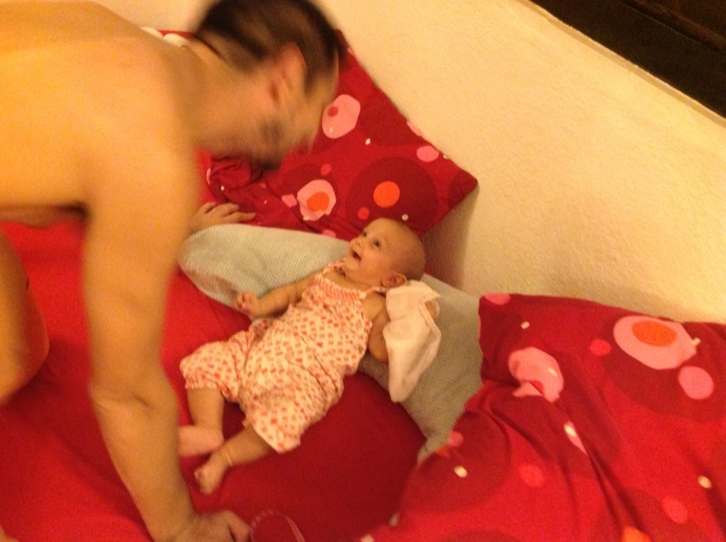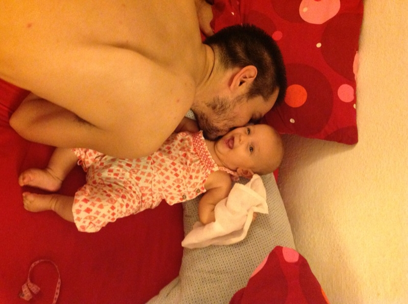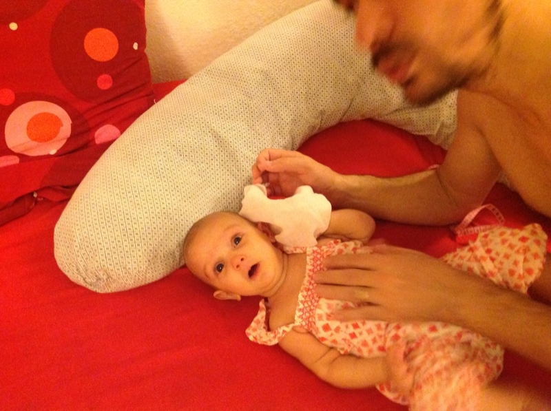 Aujourd’hui, Sienna c’est retournée du dos au ventre pour la première fois! Et c’est grâce à Milo qui a passé une bonne dizaine de minutes à la tourner dans tous les sens… 🙂