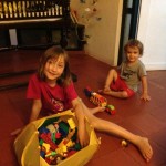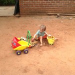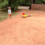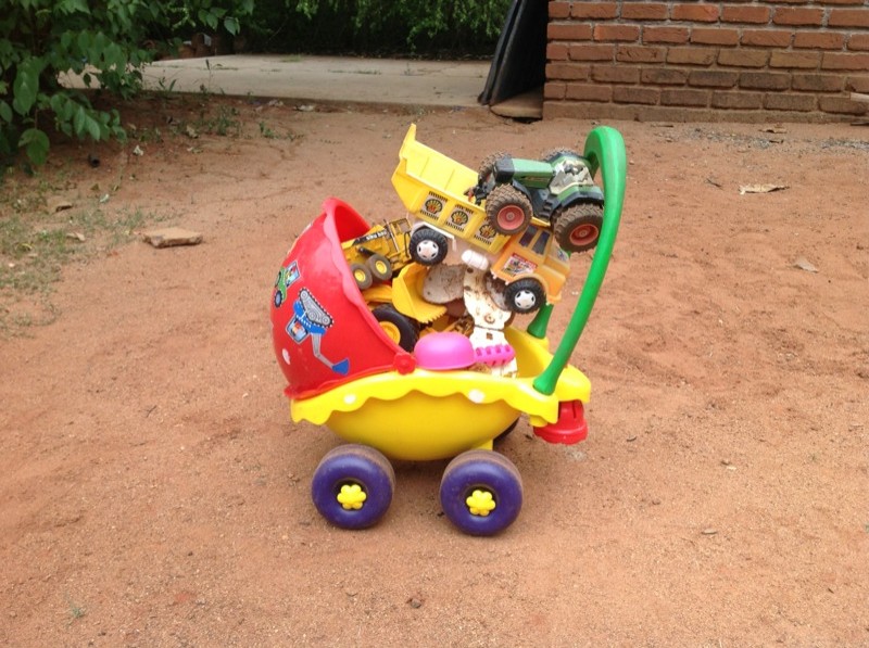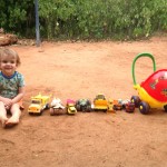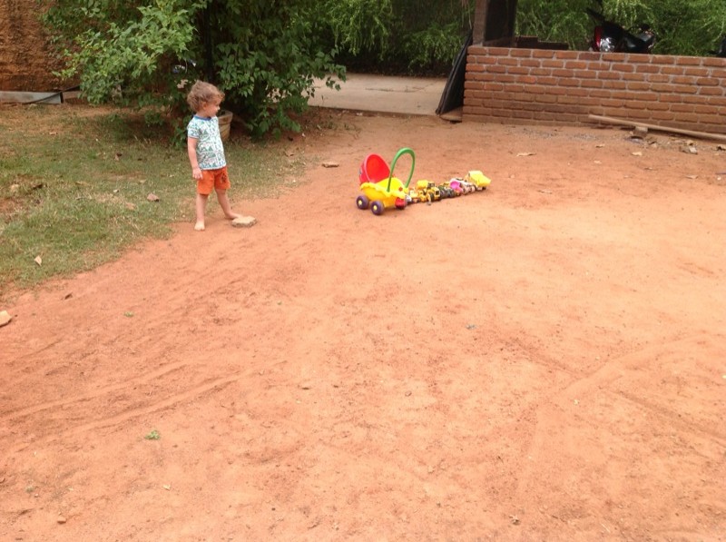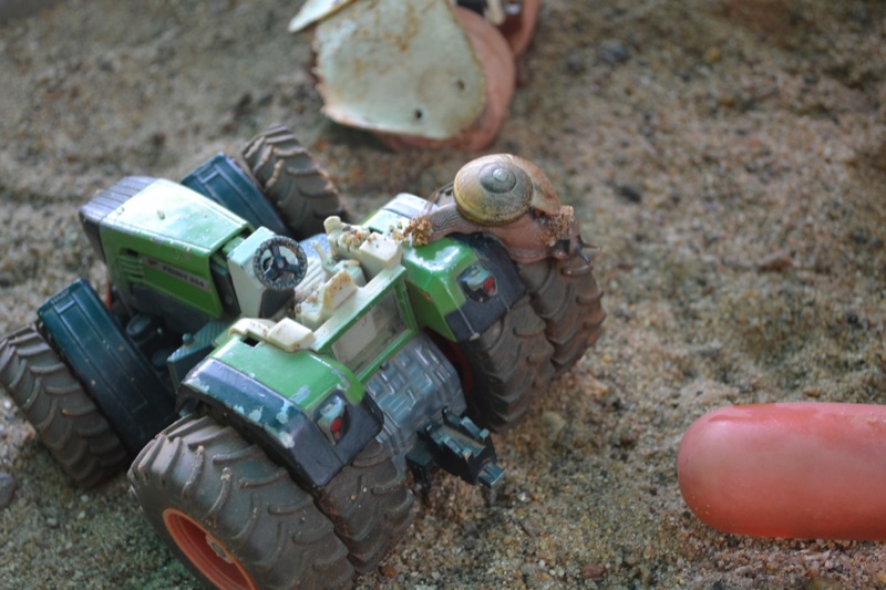 Il aime les trimbaler d’un bout à l’autre du jardin, les ranger bien en ligne et puis …