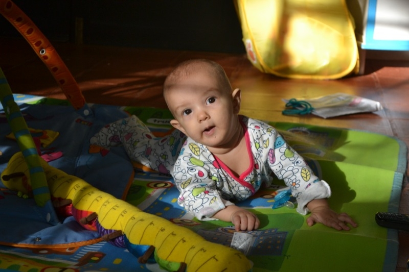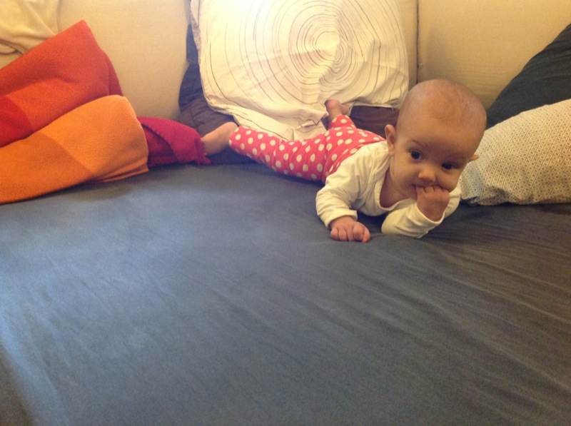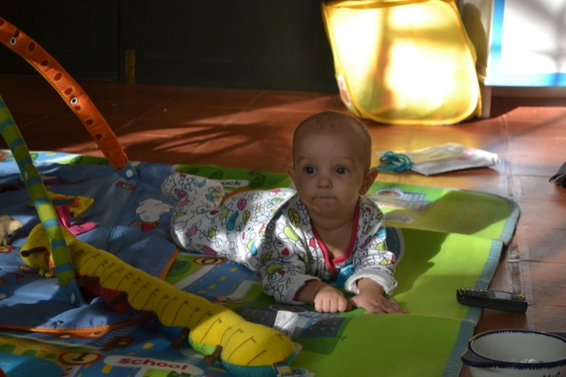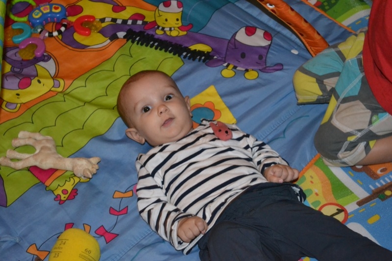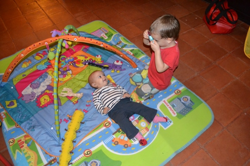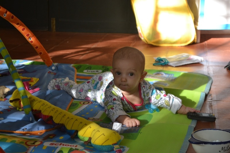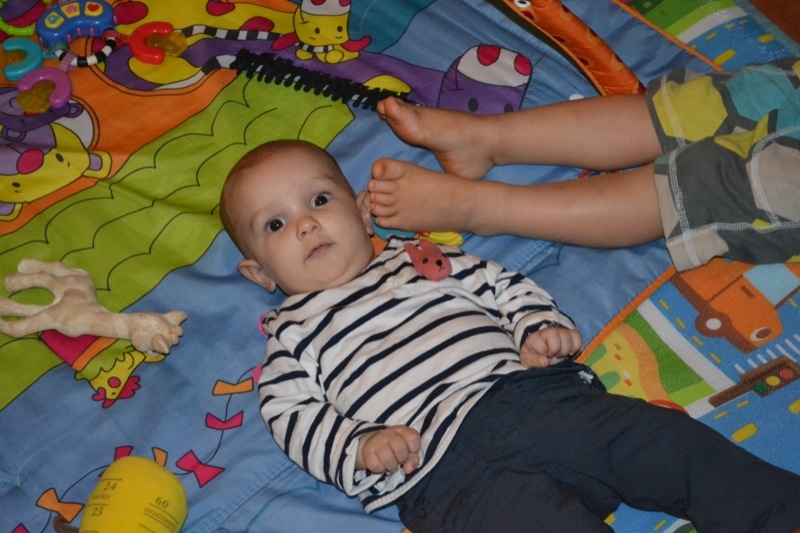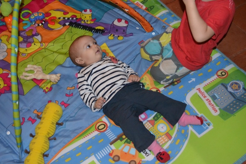 Grand changements , Sienna arrive a rester assise sans support pendant quelques temps! Elle tourne et vire dans tous les sens pour se déplacer, souvent pour essayer d’attraper un jouet, ceux de Milo étant bien plus intéressant évidement!