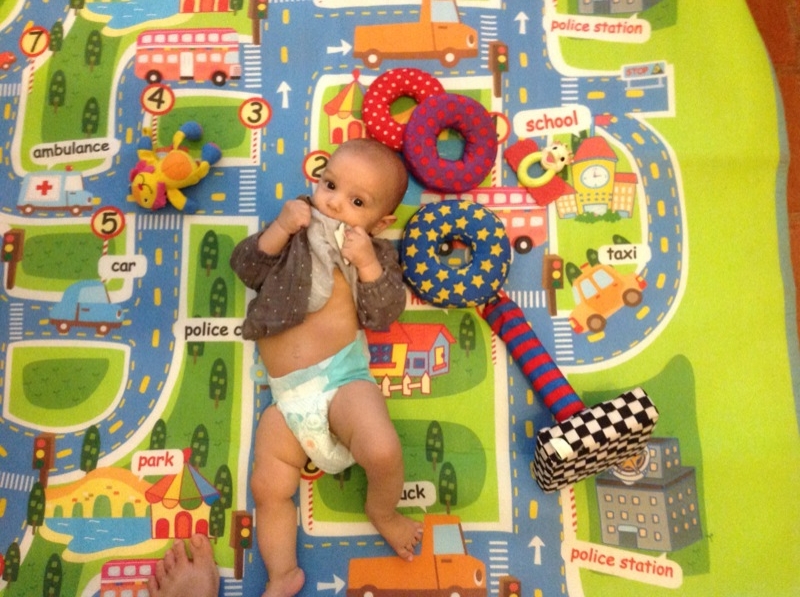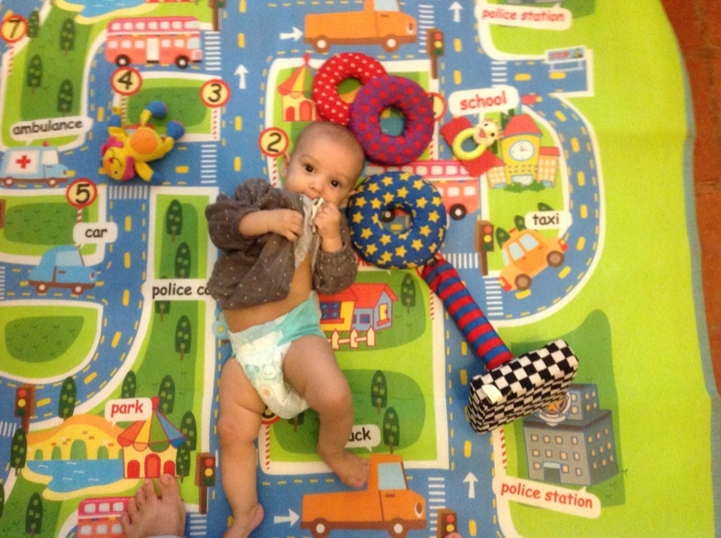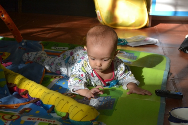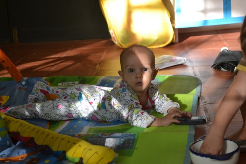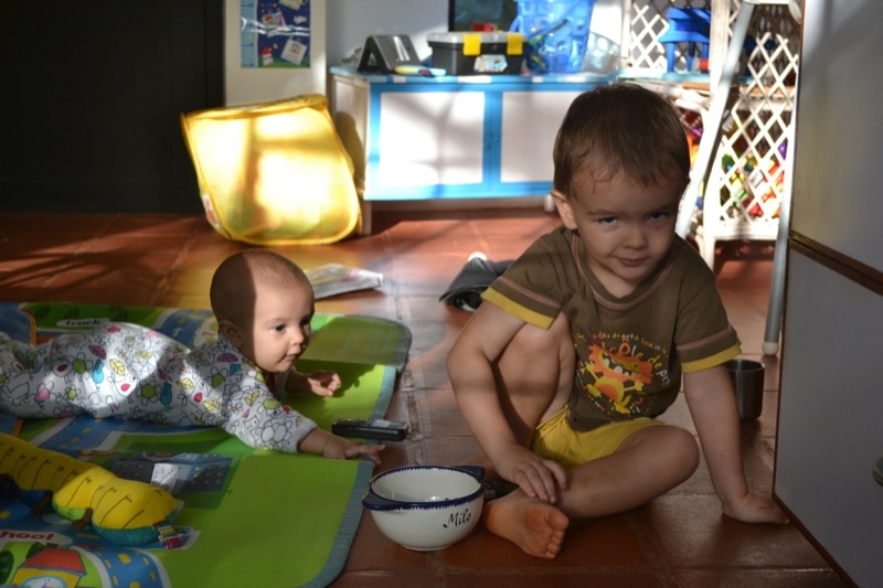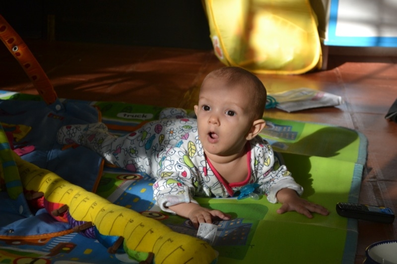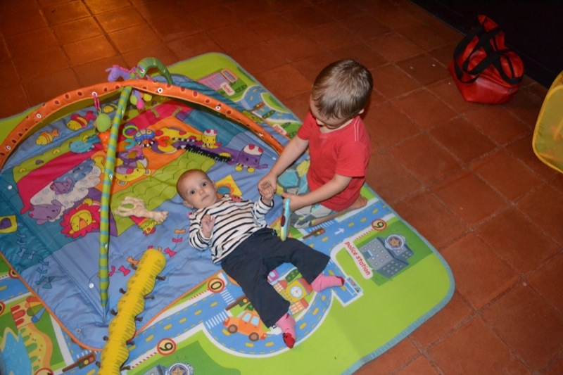 Grand changements , Sienna arrive a rester assise sans support pendant quelques temps! Elle tourne et vire dans tous les sens pour se déplacer, souvent pour essayer d’attraper un jouet, ceux de Milo étant bien plus intéressant évidement!