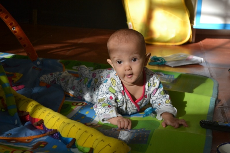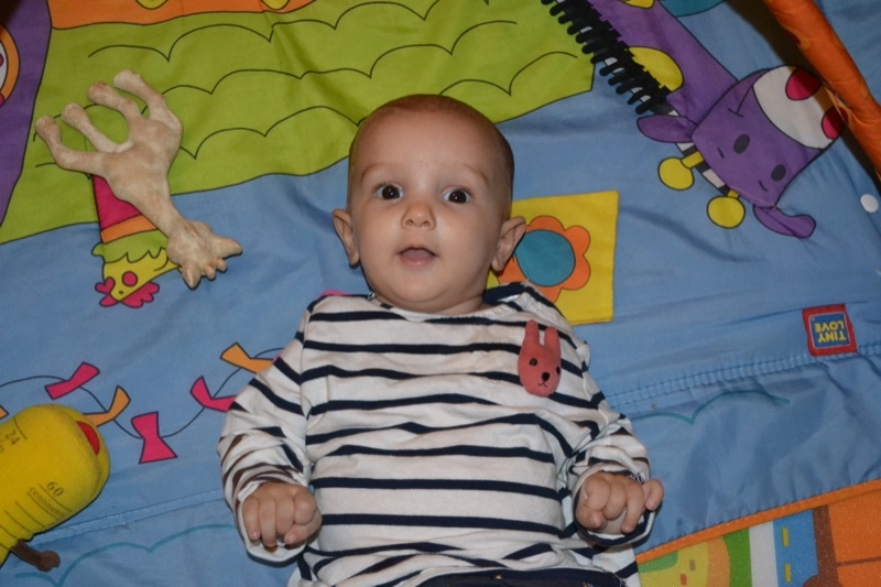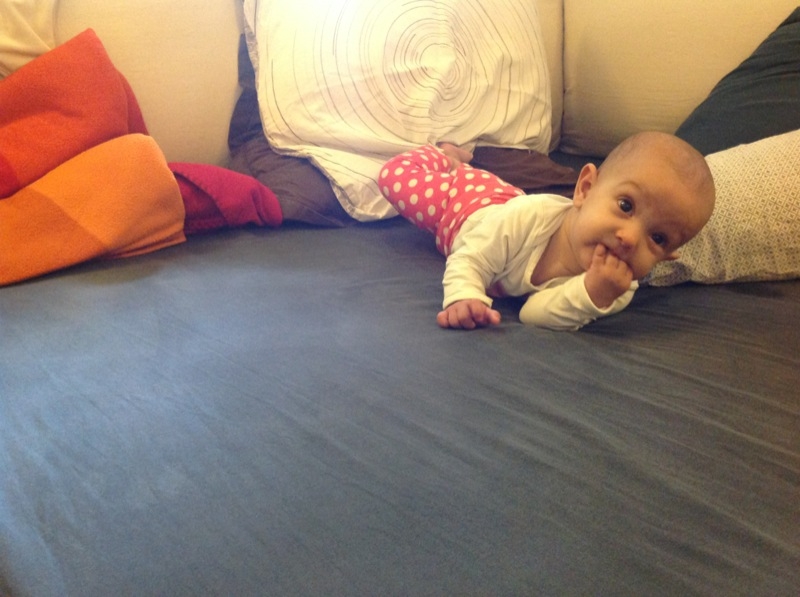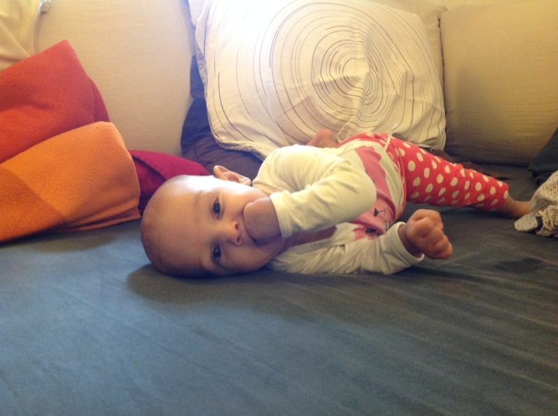 Elle bave toujours autant, mais aucune dent pour l’instant… Milo en avait déjà deux à son age 🙂