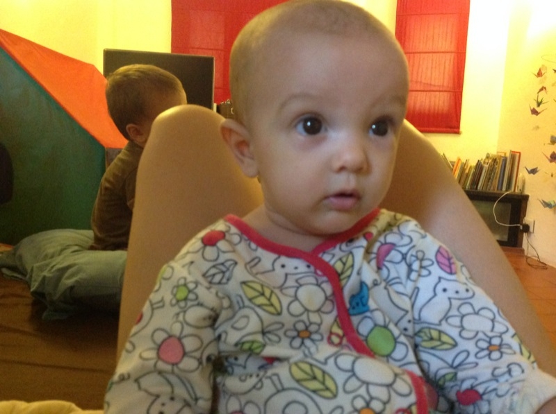 Mademoiselle parle, parle, parle! Et elle a de la voix! Elle mimique aussi les sons qu’on fait! En ce moment, on entends beaucoup de Oh!