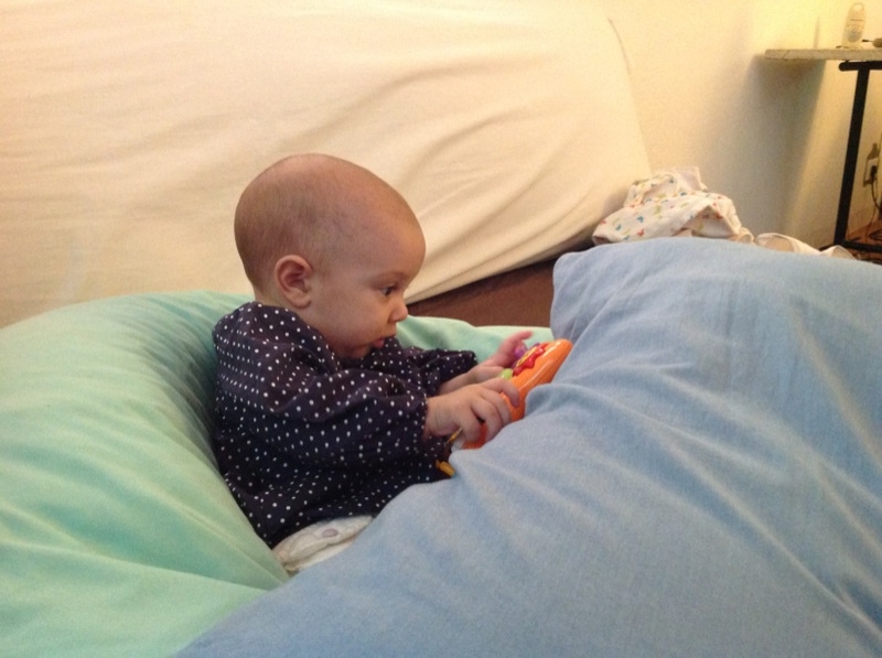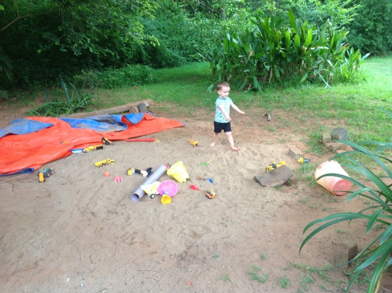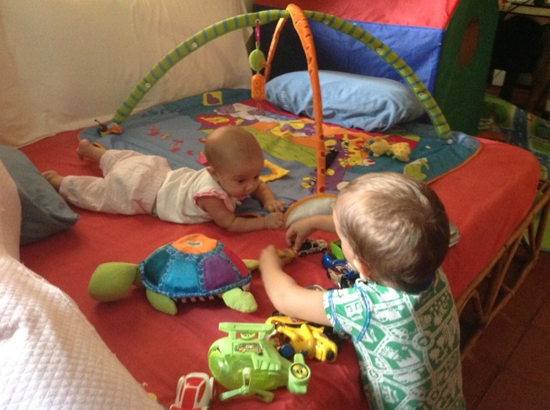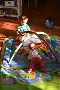On joue dans le bac à sable, et on apprend à Sienna comment jouer avec les petites voitures, ça peux paraître facile, mais c’est tout un art!