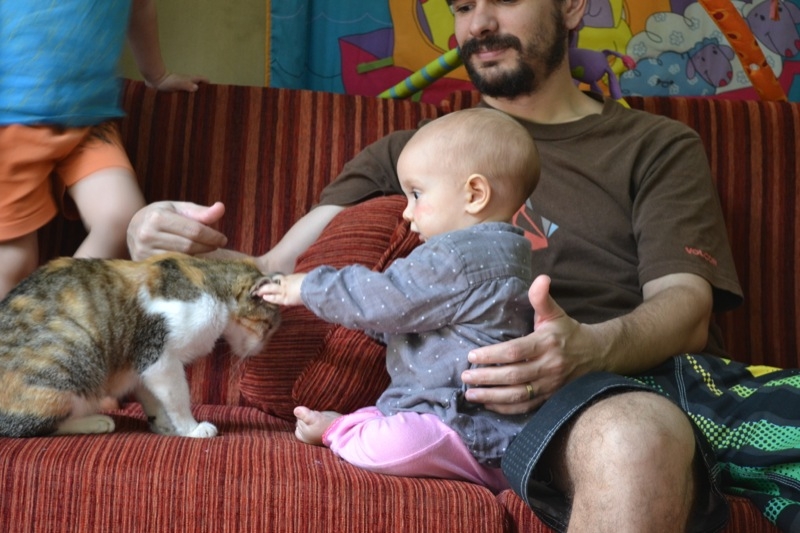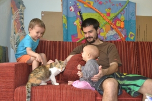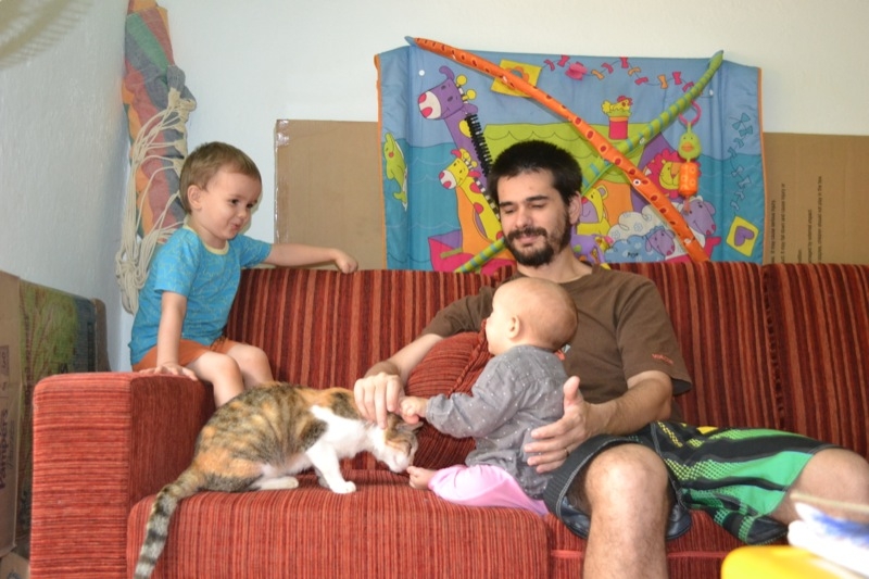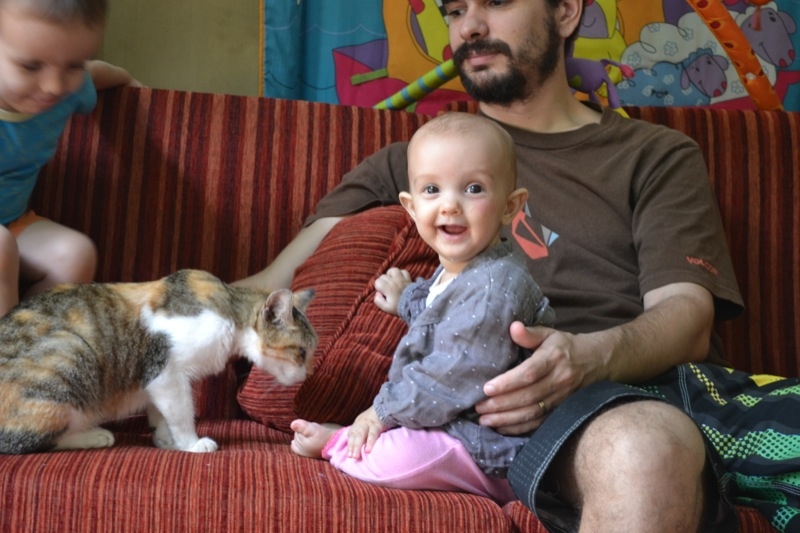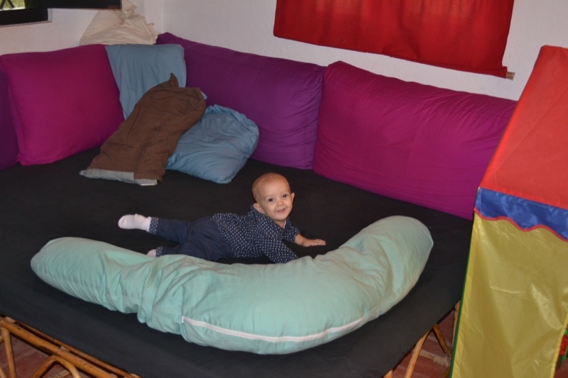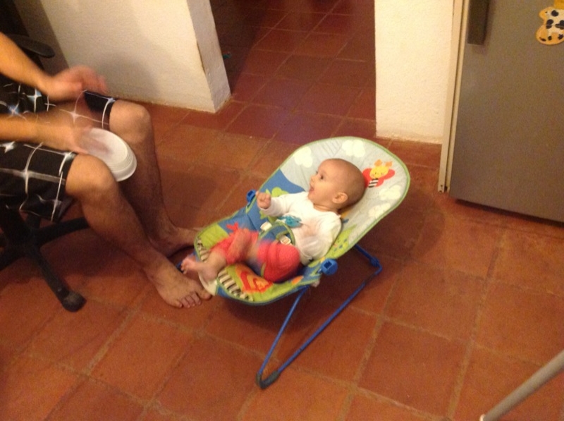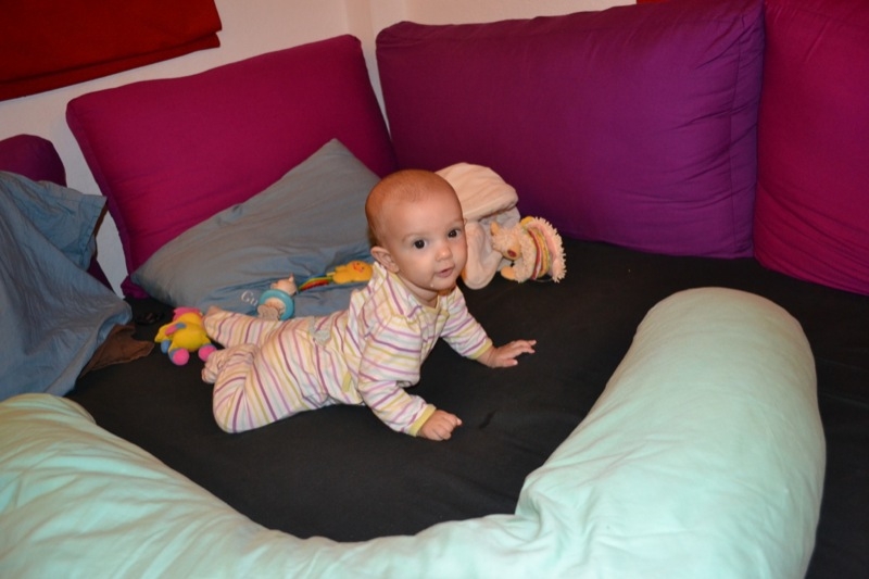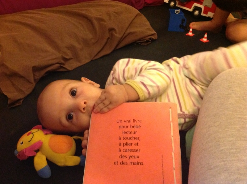 Milo adore son vélo, il vit dessus! Comme il pleut encore régulièrement, on garde le vélo dedans et Milo ne se déplace plus sans… C’est l’heure de la douche? Hop, il va dans la salle de bain en vélo, puis on repart dans la cuisine… Si il pouvait, il l’amènerait avec lui dans sa chambre!