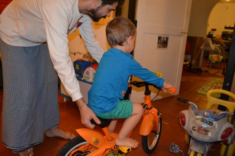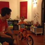 Le cadeaux tant attendu, le vélo! Il a fallu l’essayer tout de suite!