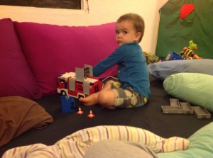 L’autre jouet préféré est bien sur le camion de pompier! Il fait de la lumière et a plein d’accessoires!