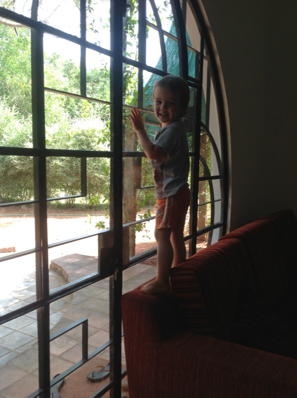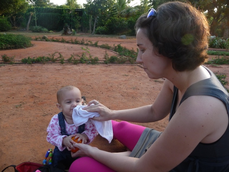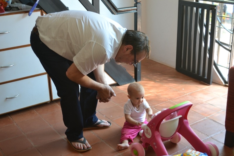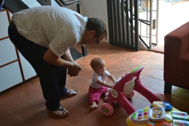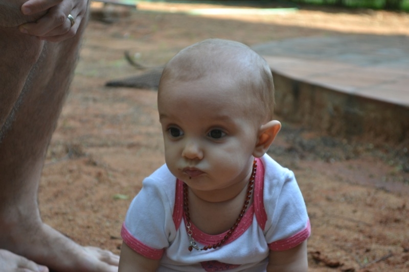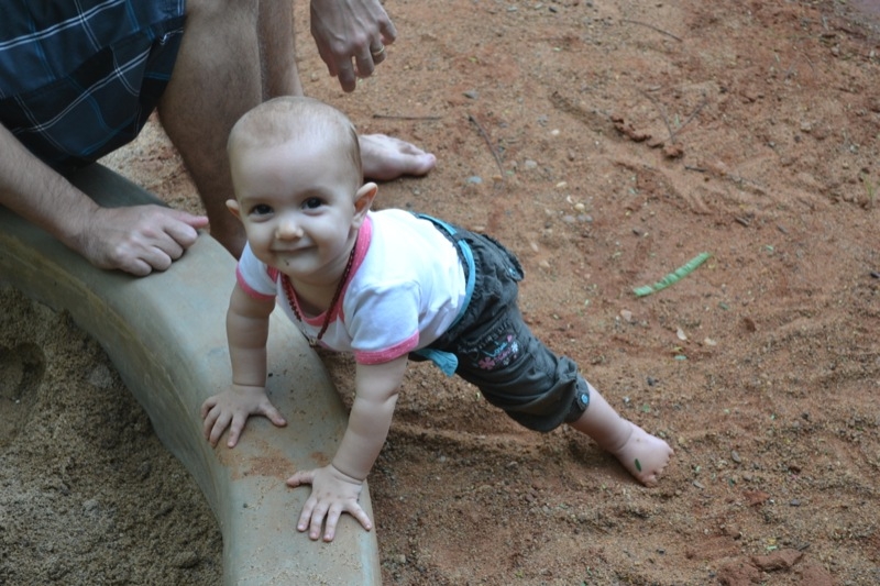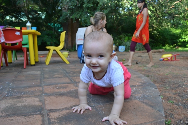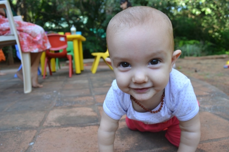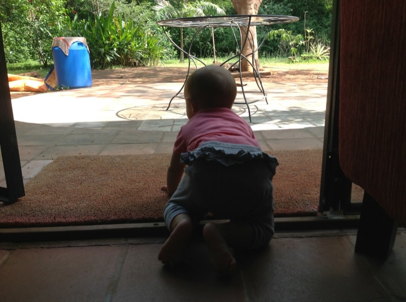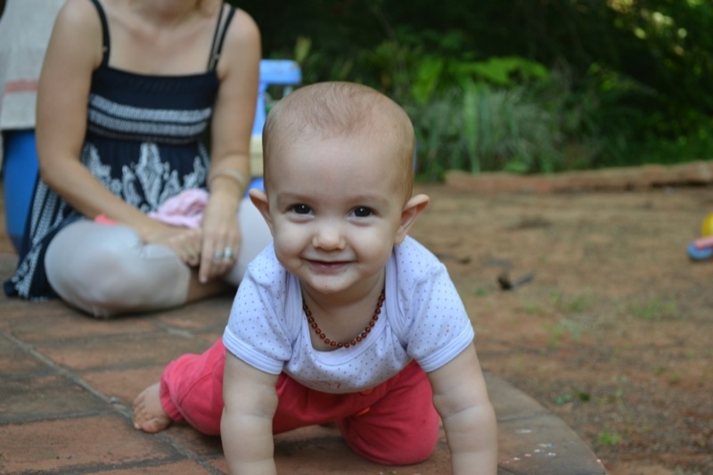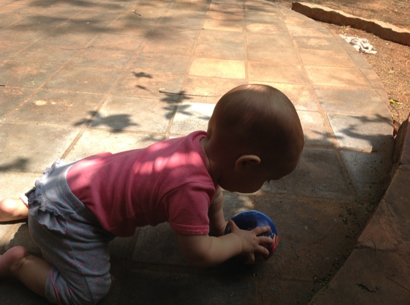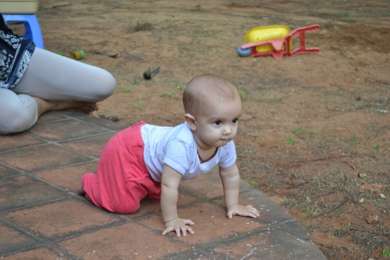 Ca y est, Sienna a sa première dent! A 9 mois et demi, elle s’est fait attendre… Pas de photo de la dent pour l’instant, mais voila Sienna dans sa position préféré du moment: elle essaye de se mettre debout tout le temps!