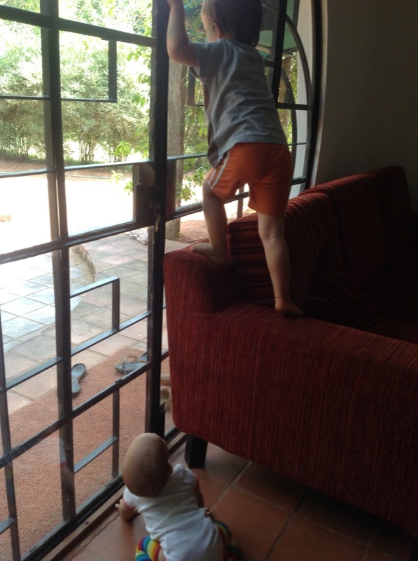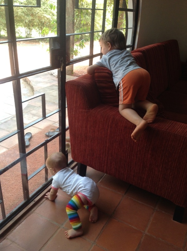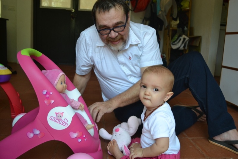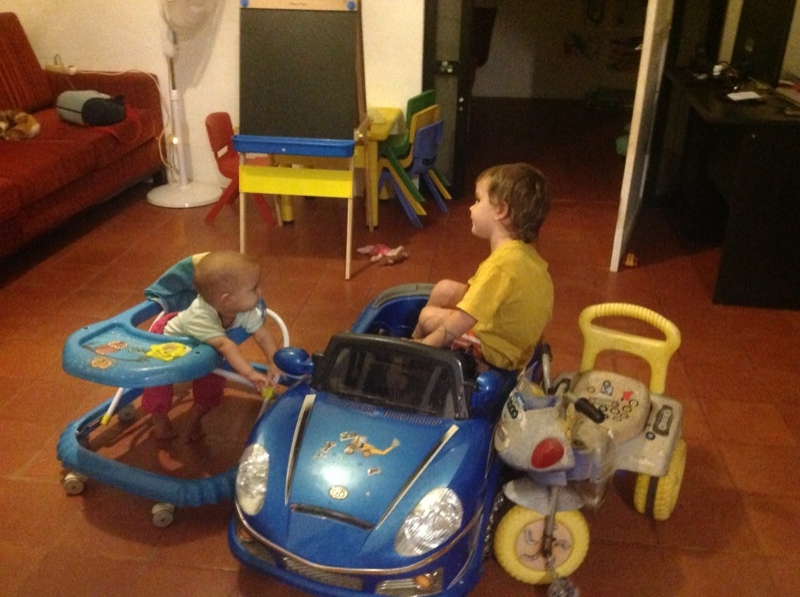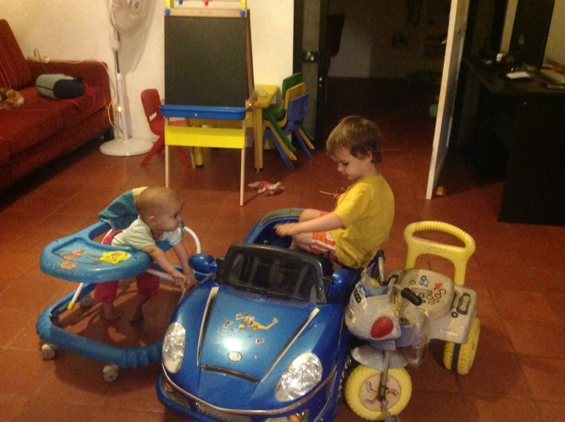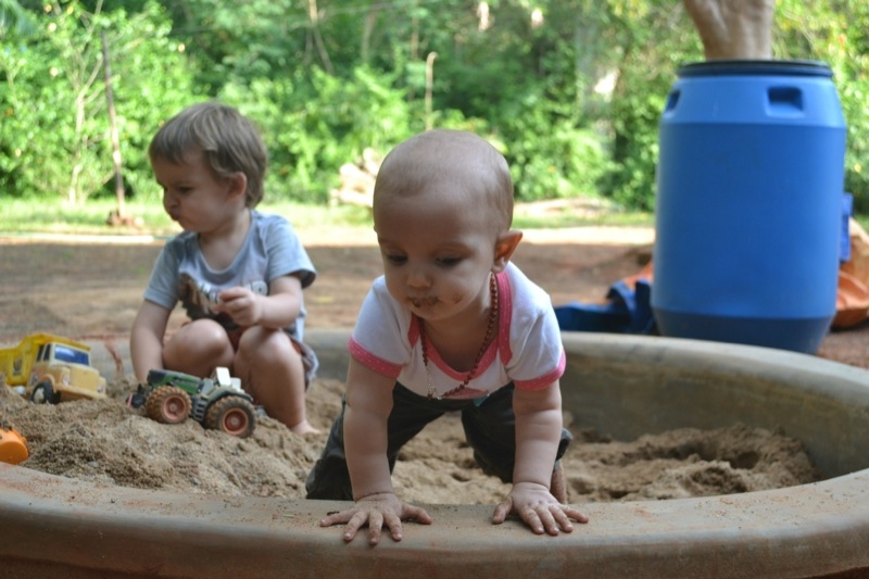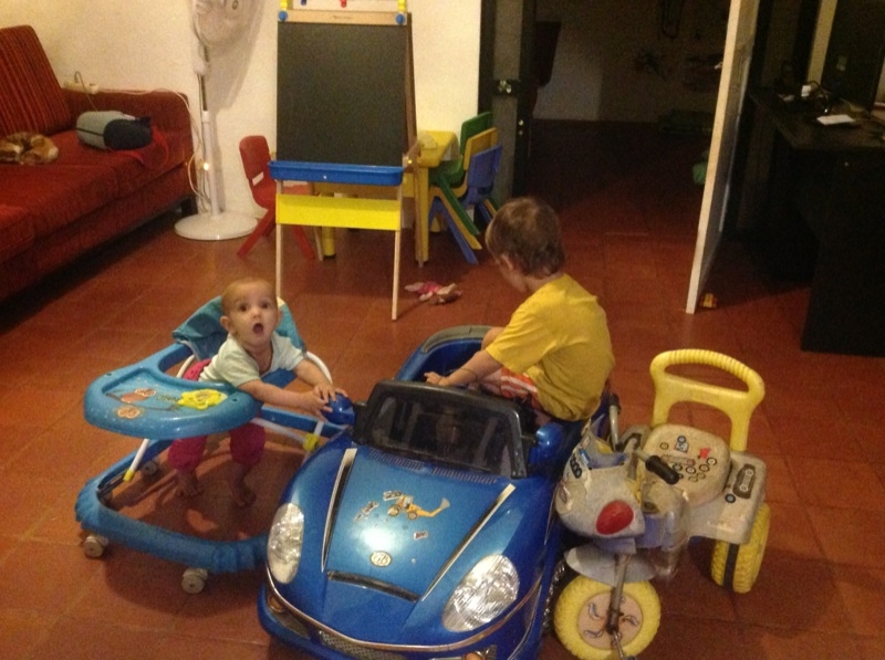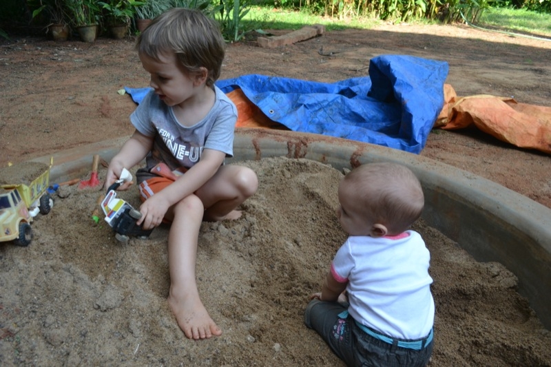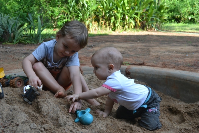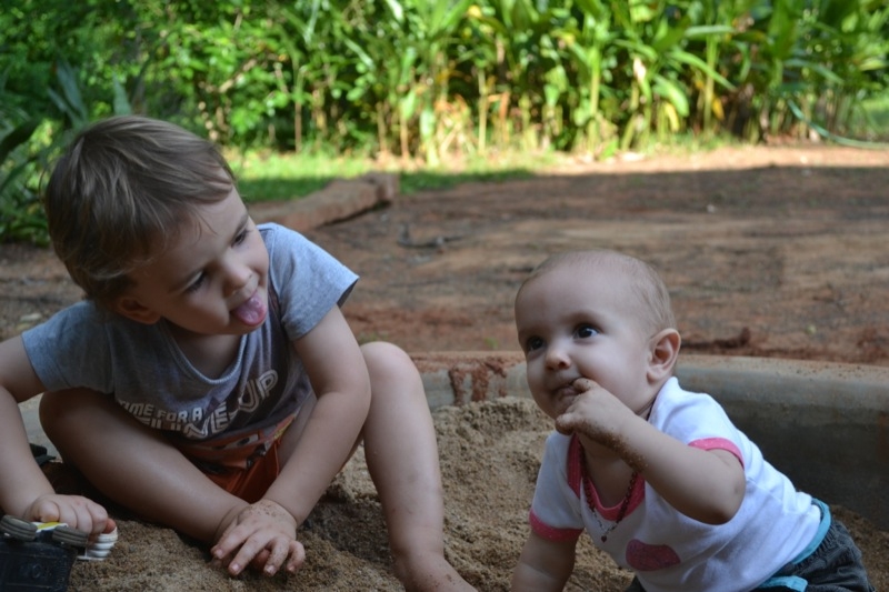 Ils aiment tous les deux être dehors! Et Sienna préfère bien sur les jouets de Milo, ils sont tellement plus intéressant! Milo lui a une nouvelle façon de sourire…
