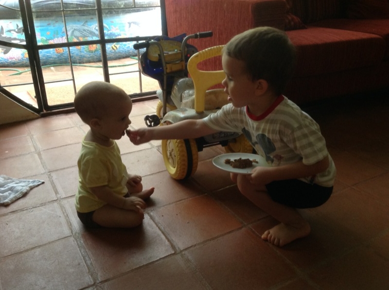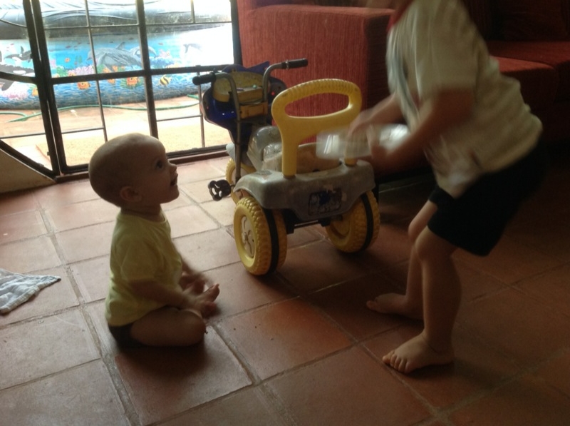 Et pour Sienna, il n’y a personne de plus drôle que son frère! Des qu’elle le voit elle sourit… Ces deux la sont inséparables! Elle veut le suivre partout, faire ce qu’il fait, jouer avec ses jouets… Bref, ça ne fait que commencer!