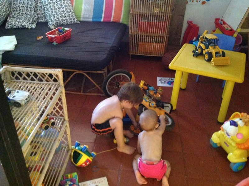 Cette année il aura 4 maitresses pour le premier trimestre (une part en congé maternité après) puis 3. Il sont 13 élèves pour l’instant mais deux nouvelles petites filles vont bientôt arrivées. Un prof pour 5 élèves c’est plutôt raisonnable non? 🙂