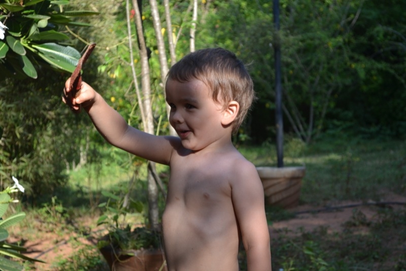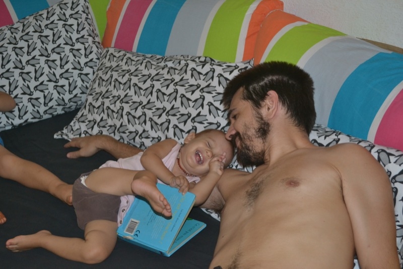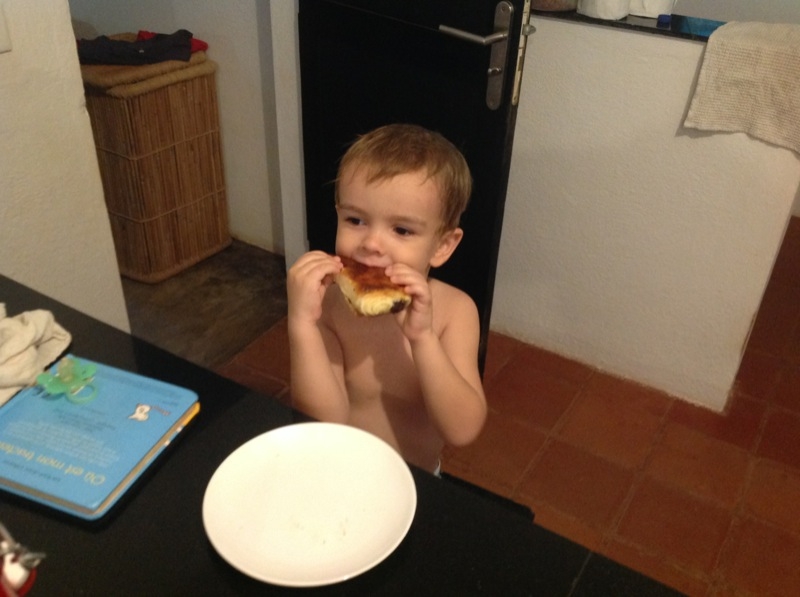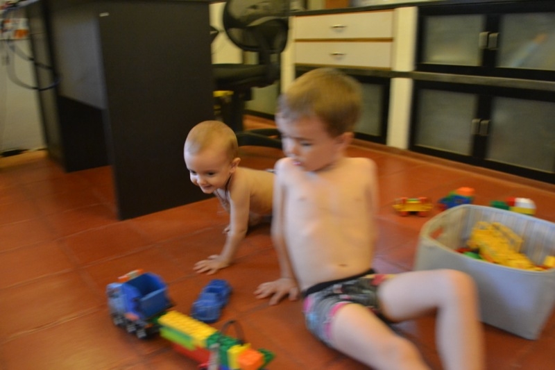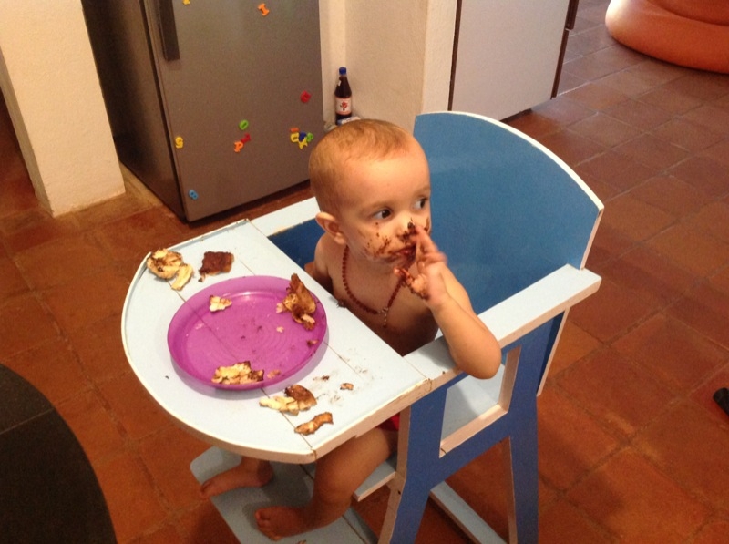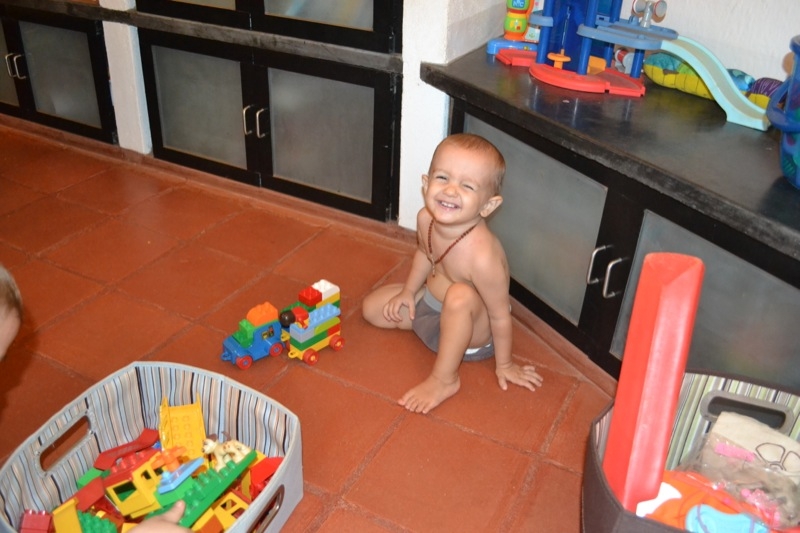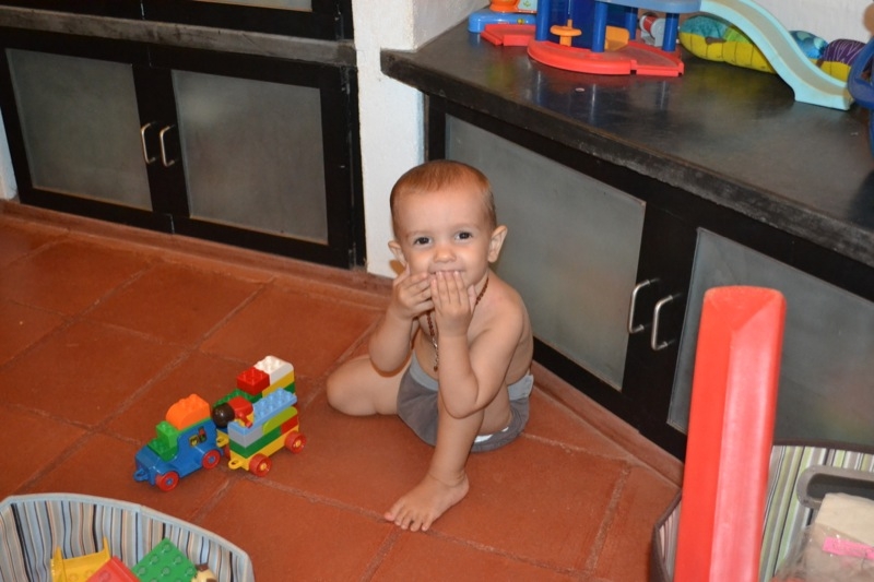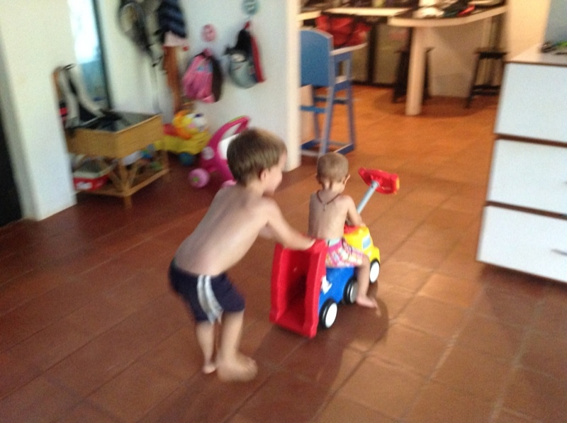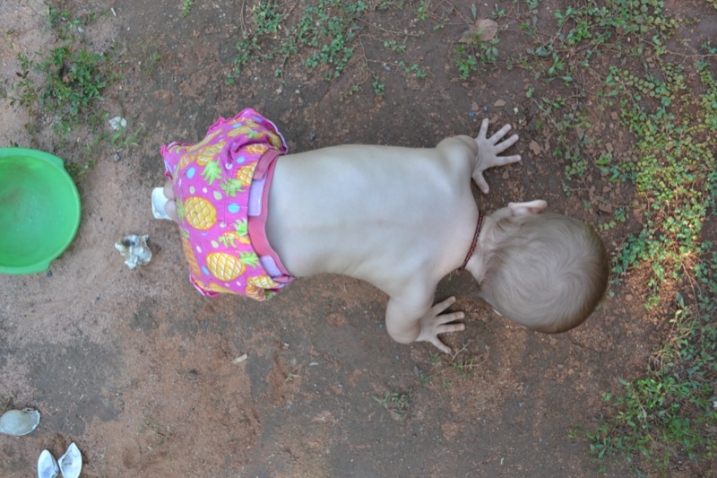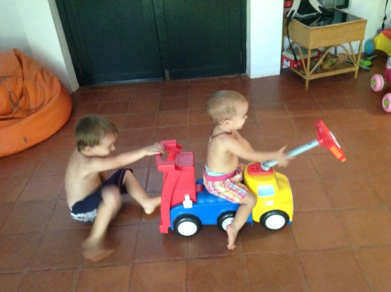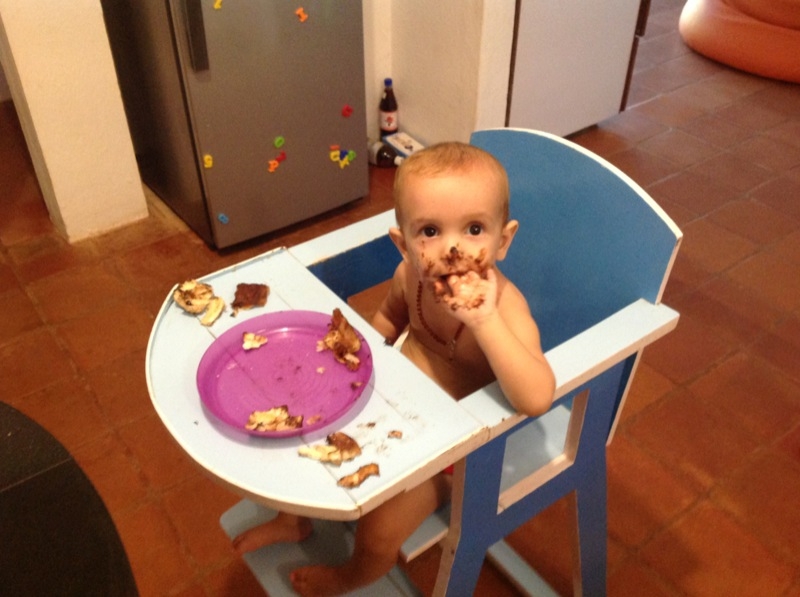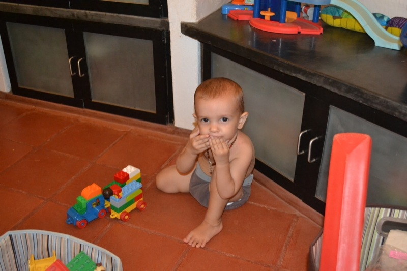 Elle parle aussi de plus en plus, et son dernier mot est ‘tracteur’! Etonnant non? C’est bien la soeur de Milo! Elle dit aussi ‘de l’eau’, ‘this’ (en pointant avec son petit doit), baloo (pour chien), tête… Et comprend tout ce qu’on lui dit!