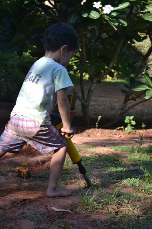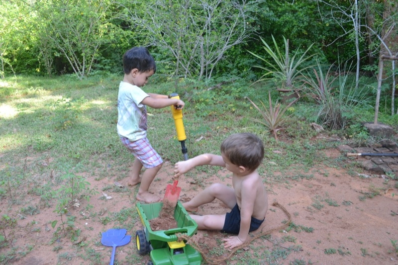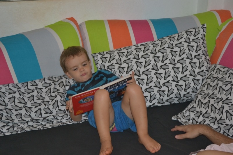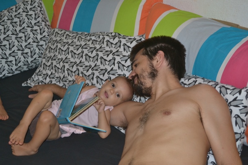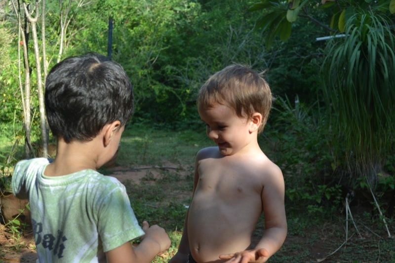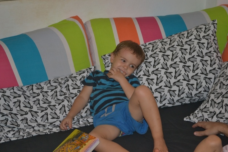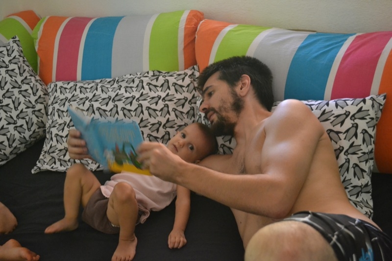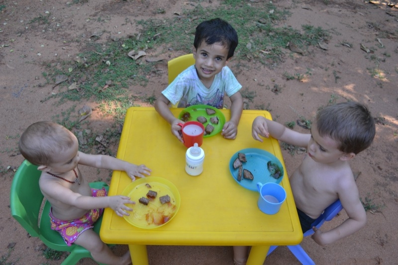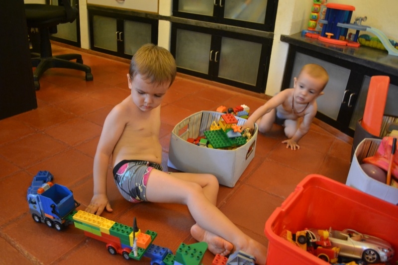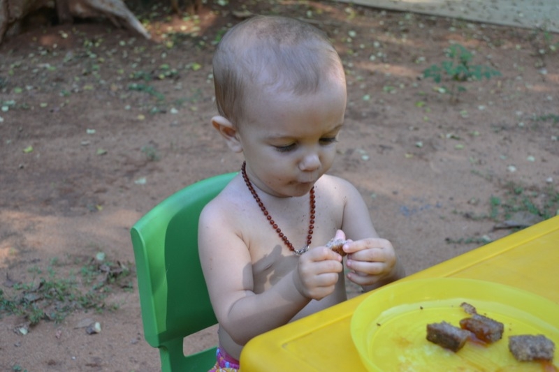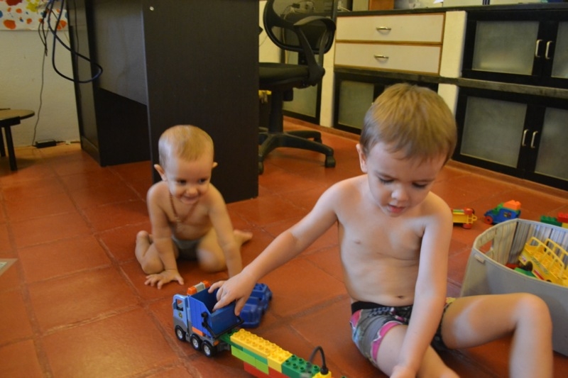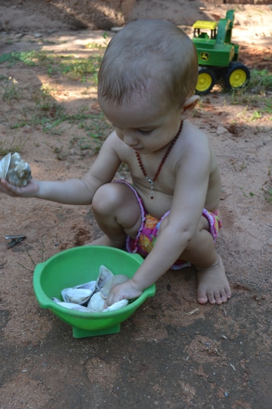 Elle parle aussi de plus en plus, et son dernier mot est ‘tracteur’! Etonnant non? C’est bien la soeur de Milo! Elle dit aussi ‘de l’eau’, ‘this’ (en pointant avec son petit doit), baloo (pour chien), tête… Et comprend tout ce qu’on lui dit!