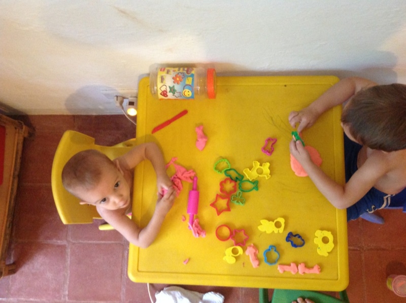 Sienna commence à être assez grande pour faire des activités avec Milo! Il faut juste faire attention qu’elle ne mange pas toute la pâte à modeler…