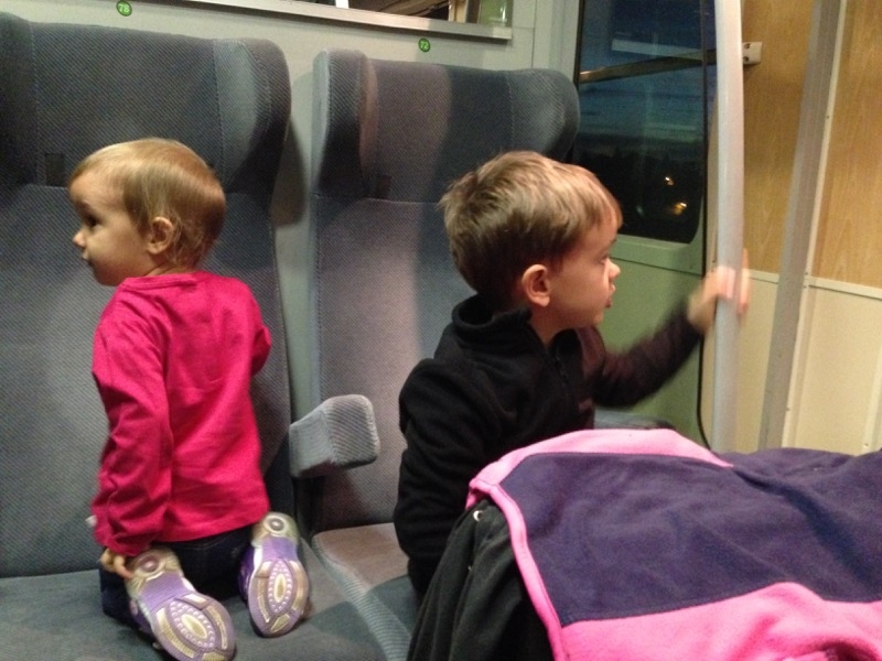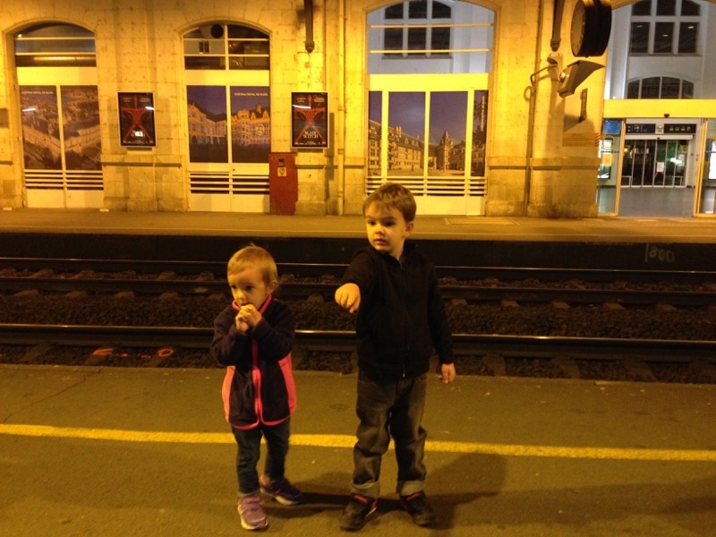 Pour commencer, on attend le train très tot le matin! Milo est aux anges d’aller dans un train!!