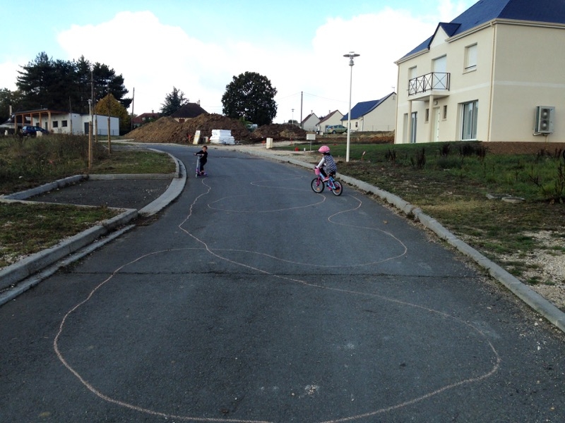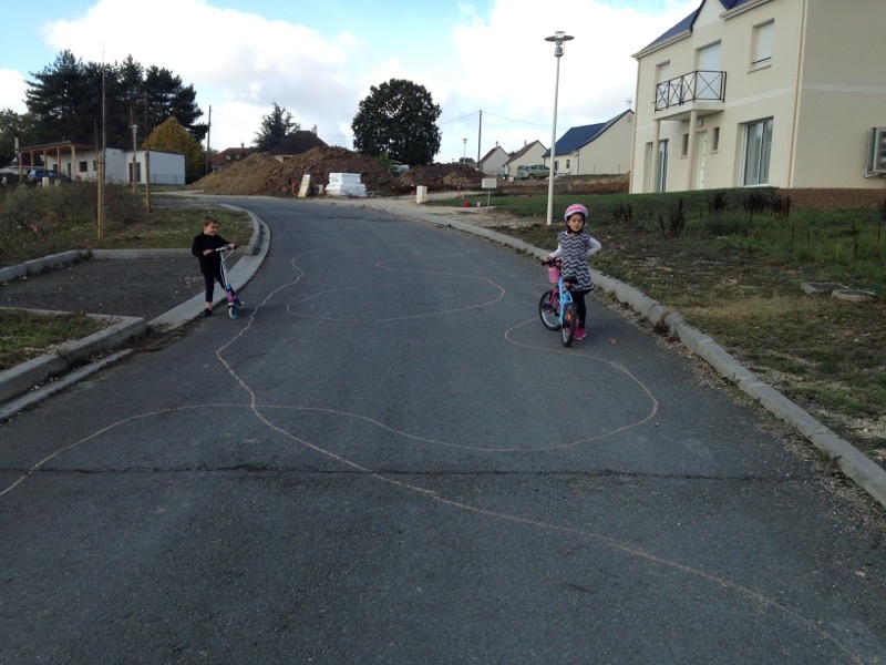 Nous voila maintenant de retour a Blois! Les enfants sont toujours aussi contant de jouer avec Justine! Circuit de vélo et trottinette pour Justine et Milo: