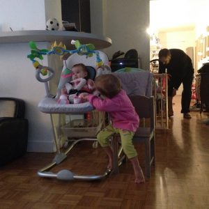 Marin est arrivé! Entre lui et Coline, les enfants sont bien occupés!