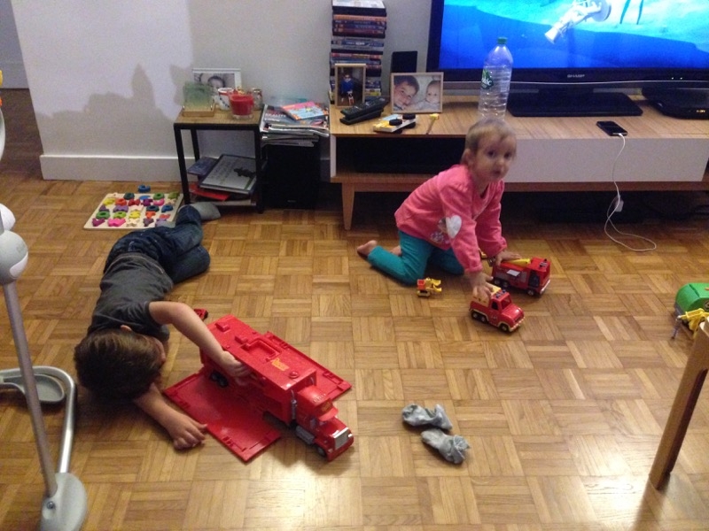 Maya et Nicolas avaient trouvé un petit camion pour Sienna et un vélo pour Milo, tous les deux étaient ravis!!