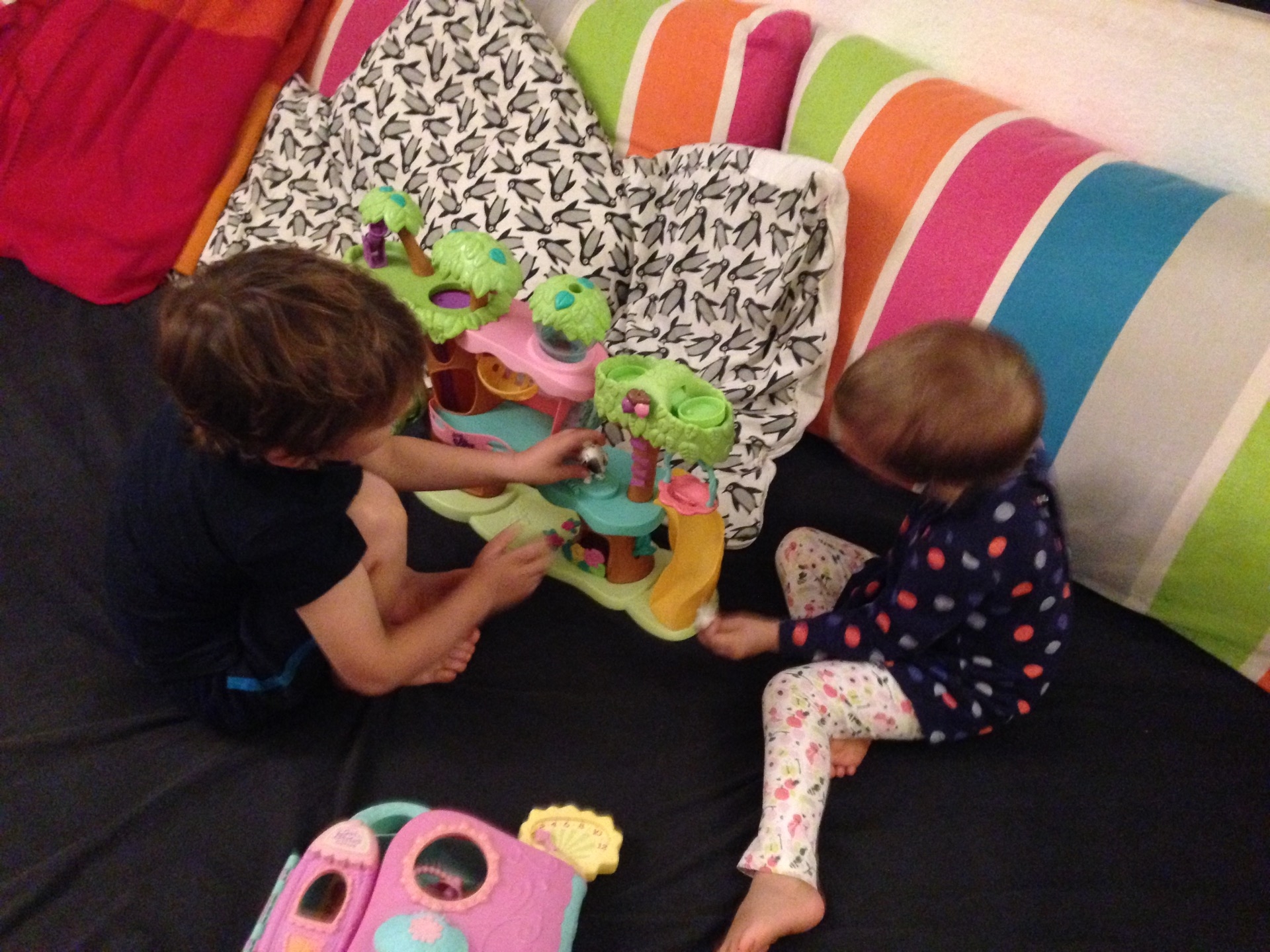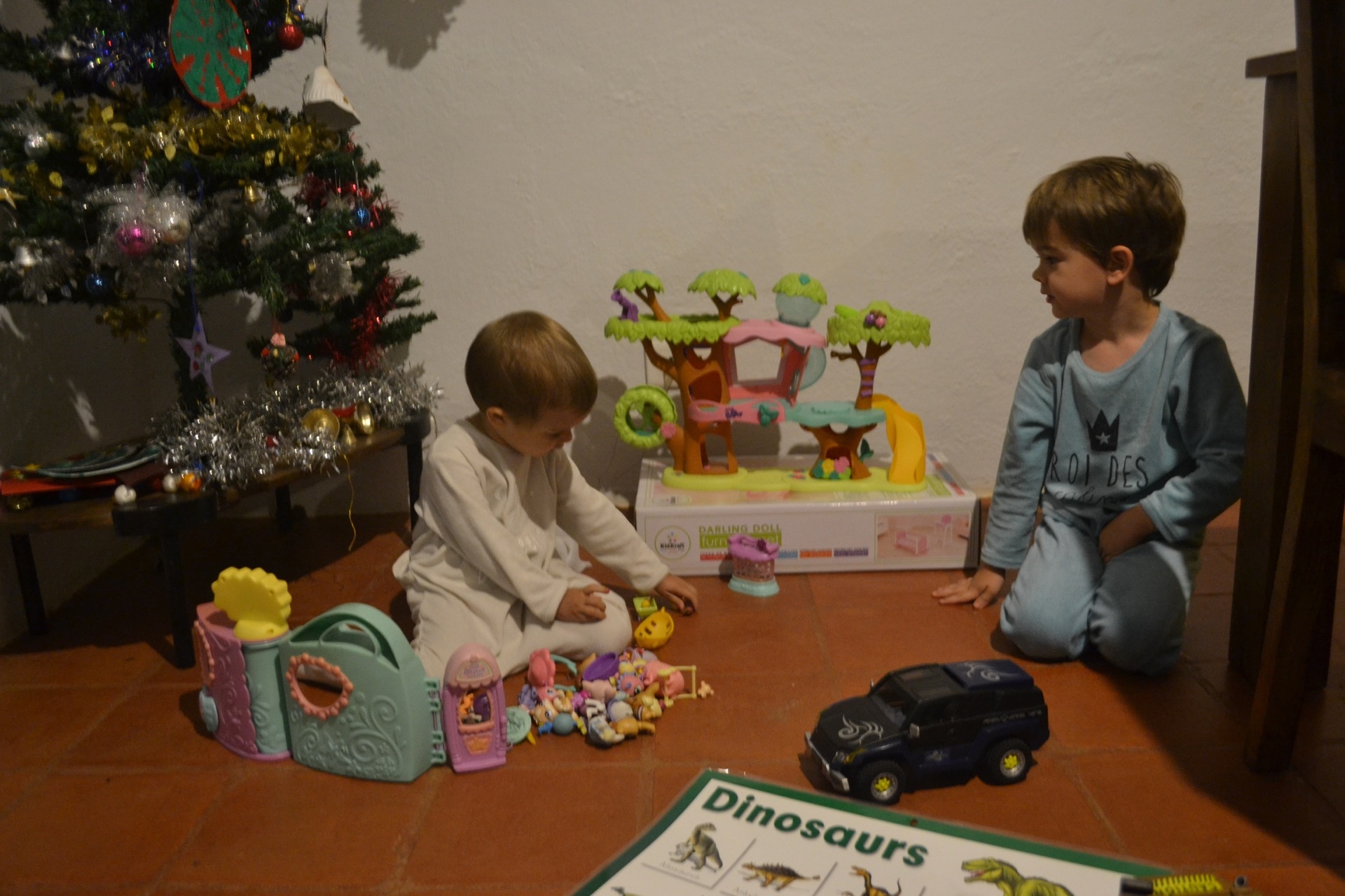 Milo a eu un grand vélo, une voiture playmobil, un camion de tortues Ninja et des tortues Ninja, un lego et un puzzle! Sienna a eu des pets shop, des animaux playmobil, et une chaises et un lit pour ses bébés. Et en commun ils ont eu une collection de livres, des déguisements de PJ masks et du chocolat!