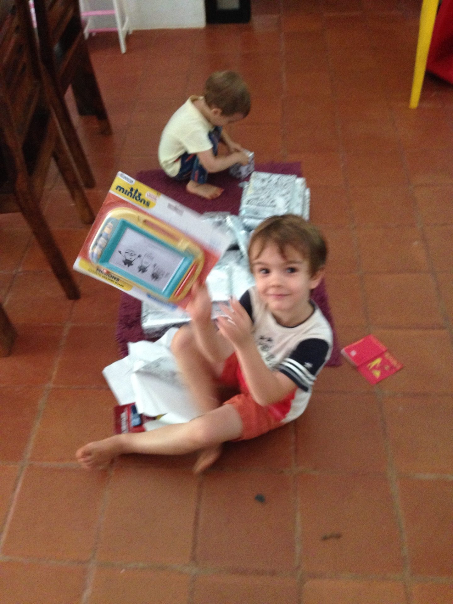 Aurore et Kevin viennent d’arriver pour 3 semaines! Les enfants sont très contant d’avoir leur Tata ici! Et en plus ils sont arrivés avec une montagne de cadeaux!